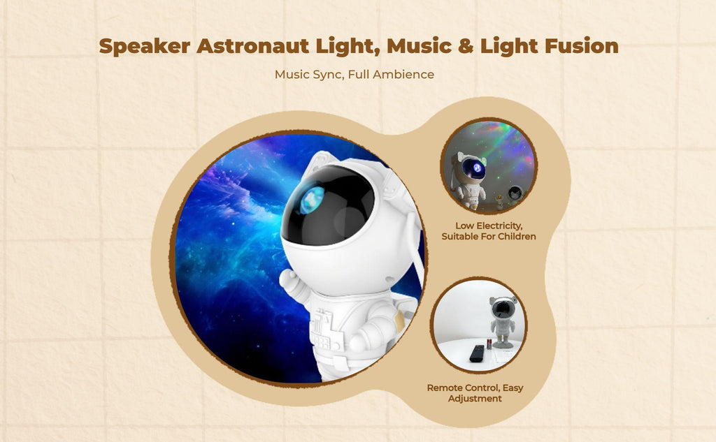 【Astronaut Celestial Projector Creates a Magical Atmosphere】Transform your bedroom or your child’s room with this astronaut celestial projector, featuring nebula effects and northern lightsdesign lighting for an immersive experience. Perfect for birthdays, holidays, and special gatherings. 【 Speaker with Neutral Noise Function】The built-in 5.1 speaker and 8 neutral noise choices provide soothing sounds for relaxation, making it an choice for bedrooms, game rooms, and nurseries. 【Remote & Timer Function for Easy Control】Conveniently control with the remote or through the app, adjust brightness, and set customizable timers to fit your mood and schedule. 【360° Adjustable Head Angle & Multiple Lighting Modes】The astronaut’s flexible design allows for a 360° adjustable head and various lighting modes, so you can create a personalized atmosphere for any occasion. 【Energy-Efficient, Portable, and Sleek】Made from PC+PVC, this energy-saving light features a universal connector, sleek design, and portability—perfect for home, dormitory, or travel use.