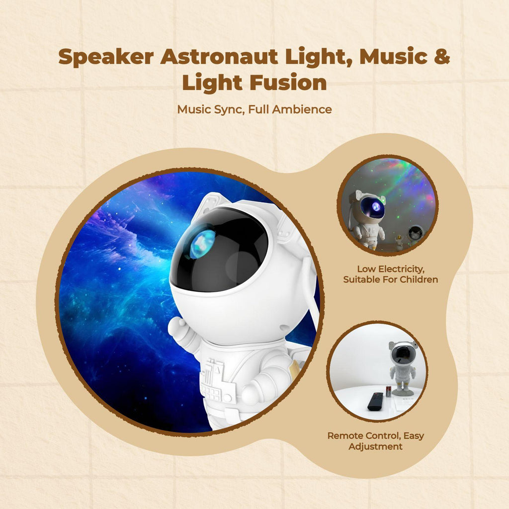 【Astronaut Celestial Projector Creates a Magical Atmosphere】Transform your bedroom or your child’s room with this astronaut celestial projector, featuring nebula effects and northern lightsdesign lighting for an immersive experience. Perfect for birthdays, holidays, and special gatherings. 【 Speaker with Neutral Noise Function】The built-in 5.1 speaker and 8 neutral noise choices provide soothing sounds for relaxation, making it an choice for bedrooms, game rooms, and nurseries. 【Remote & Timer Function for Easy Control】Conveniently control with the remote or through the app, adjust brightness, and set customizable timers to fit your mood and schedule. 【360° Adjustable Head Angle & Multiple Lighting Modes】The astronaut’s flexible design allows for a 360° adjustable head and various lighting modes, so you can create a personalized atmosphere for any occasion. 【Energy-Efficient, Portable, and Sleek】Made from PC+PVC, this energy-saving light features a universal connector, sleek design, and portability—perfect for home, dormitory, or travel use.Specification: