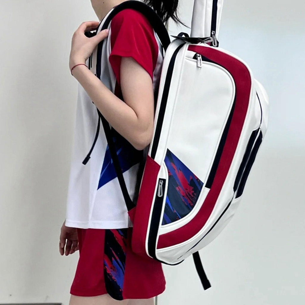 Maxbell Badminton Rackets Backpack PU Leather Professional Lightweight for Men Women White Red