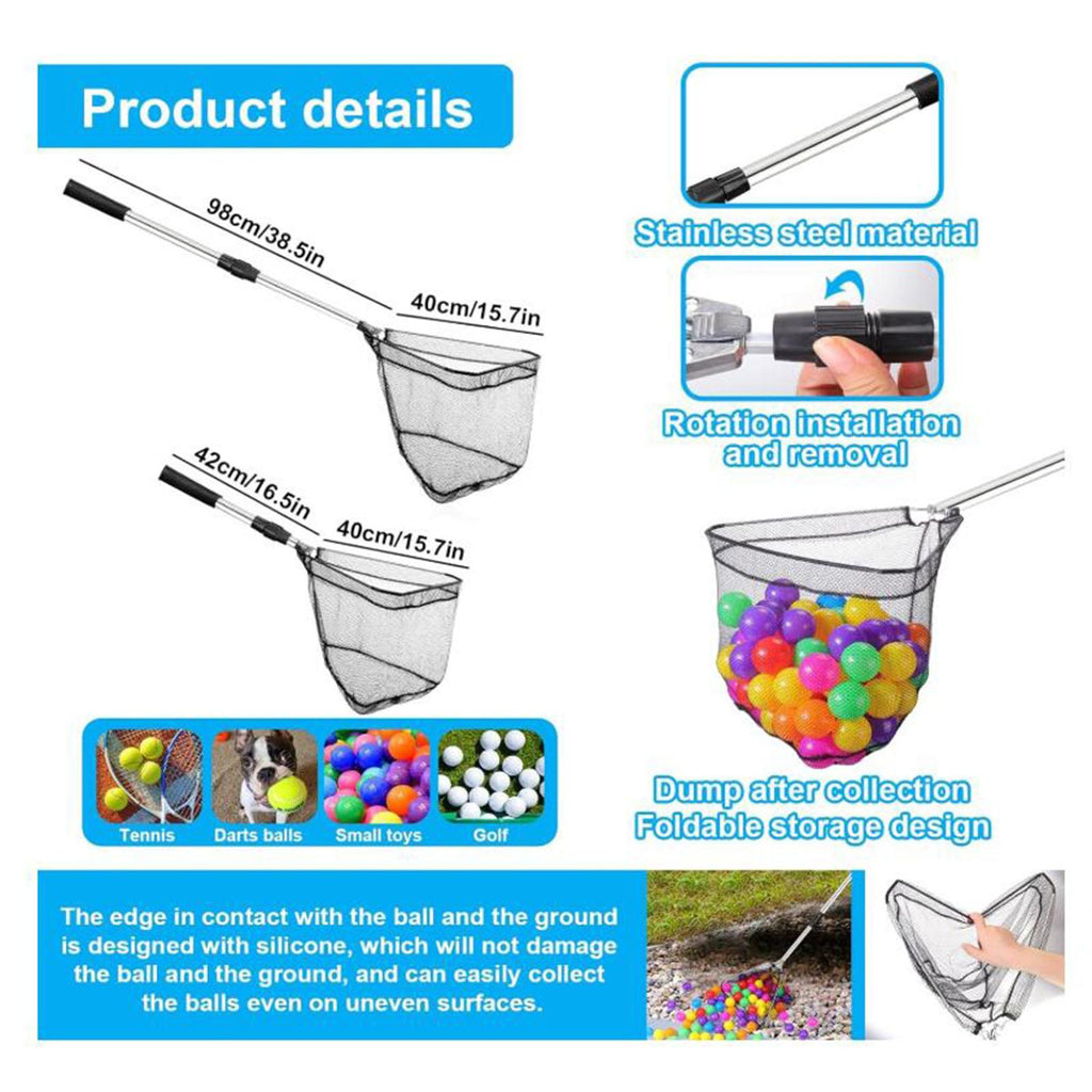 - 【Ready for Action】: Ready to use folding landing net. No assembly is required. Just unfold, extend the handle of the Ball Picker, and you're prepared to scooping your ball pit balls