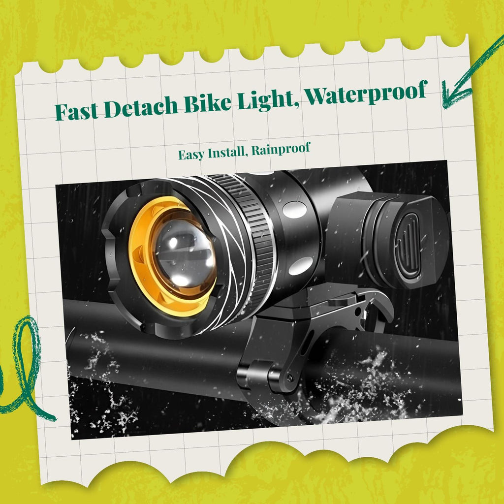 【super Bright Bike Headlight for Night Riding】Light up your path with this premium bike headlight featuring super bright light-emitting diode lighting, offering improved visibility and safety for nighttime riding and urban commuting.【universal port Rechargeable & Easy Installation】Convenient universal port charging lets you energize your devices while traveling, while the cordless design ensures fast and simple installation for electric bikes and scooters.【sturdy Weather-Resistant Construction】Crafted with an aluminum housing and rated IPX5 waterproof, this headlight stands up to the obstacles of biking in any weather, delivering dependable performance on hilly, tough terrain and urban roads.【Multiple Lighting Modes & Long Battery Life】Customize your lighting for different environments with peak brightness, low light, and extended battery life—perfect for extended rides, camping trips, or emergencies.【Practical & Cost-Effective Option】Offering high quality, outstanding functionality, and great value, this bike headlight is perfect for cyclists seeking a secure and more enjoyable ride.Specification: