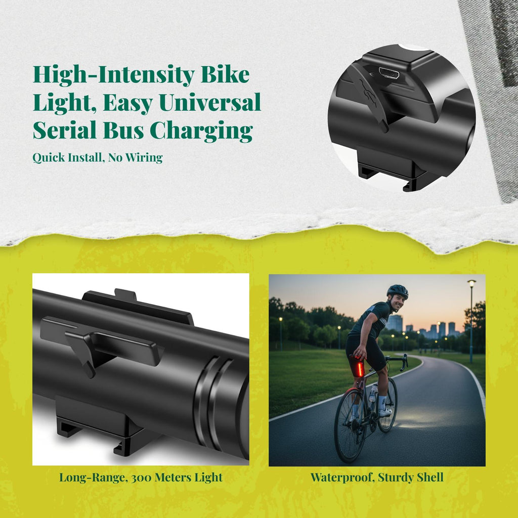 【super Bright Bike Headlight for Night Riding】Light up your path with this premium bike headlight featuring super bright light-emitting diode lighting, offering improved visibility and safety for nighttime riding and urban commuting.【universal port Rechargeable & Easy Installation】Convenient universal port charging lets you energize your devices while traveling, while the cordless design ensures fast and simple installation for electric bikes and scooters.【sturdy Weather-Resistant Construction】Crafted with an aluminum housing and rated IPX5 waterproof, this headlight stands up to the obstacles of biking in any weather, delivering dependable performance on hilly, tough terrain and urban roads.【Multiple Lighting Modes & Long Battery Life】Customize your lighting for different environments with peak brightness, low light, and extended battery life—perfect for extended rides, camping trips, or emergencies.【Practical & Cost-Effective Option】Offering high quality, outstanding functionality, and great value, this bike headlight is perfect for cyclists seeking a secure and more enjoyable ride.Specification: