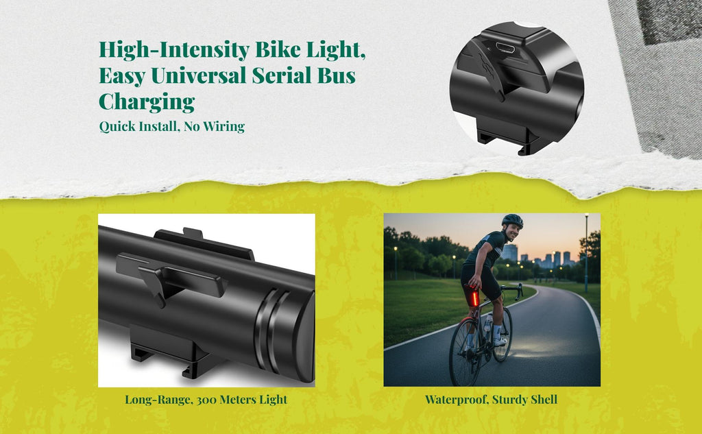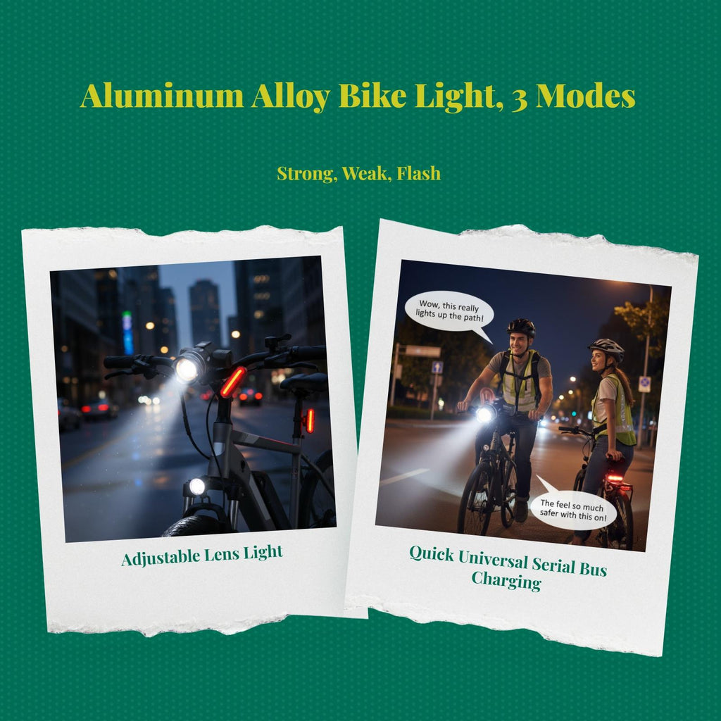 【super Bright Bike Headlight for Night Riding】Light up your path with this premium bike headlight featuring super bright light-emitting diode lighting, offering improved visibility and safety for nighttime riding and urban commuting.【universal port Rechargeable & Easy Installation】Convenient universal port charging lets you energize your devices while traveling, while the cordless design ensures fast and simple installation for electric bikes and scooters.【sturdy Weather-Resistant Construction】Crafted with an aluminum housing and rated IPX5 waterproof, this headlight stands up to the obstacles of biking in any weather, delivering dependable performance on hilly, tough terrain and urban roads.【Multiple Lighting Modes & Long Battery Life】Customize your lighting for different environments with peak brightness, low light, and extended battery life—perfect for extended rides, camping trips, or emergencies.【Practical & Cost-Effective Option】Offering high quality, outstanding functionality, and great value, this bike headlight is perfect for cyclists seeking a secure and more enjoyable ride.