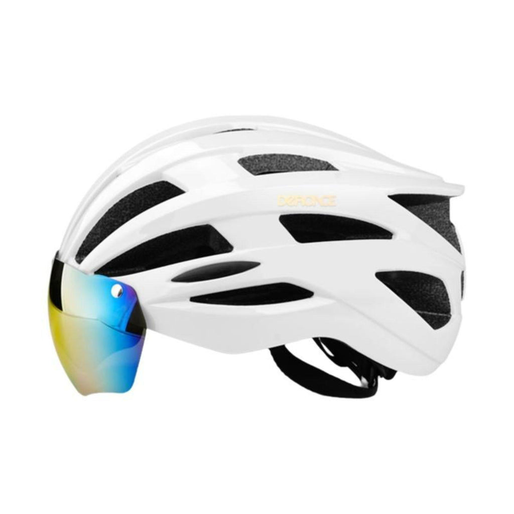 Bike Helmet, rechargeable port, Rechargeable lighting unit, Detachable Goggles, Sun Visor, trail path, Men Women Adult Bright White 58-61cm