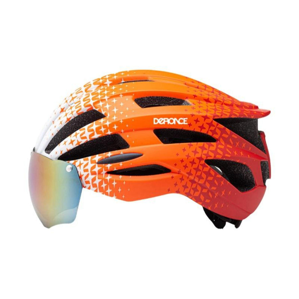 Bike Helmet, rechargeable port, Rechargeable lighting unit, Detachable Goggles, Sun Visor, trail path, Men Women Adult Red White Star 58-61cm