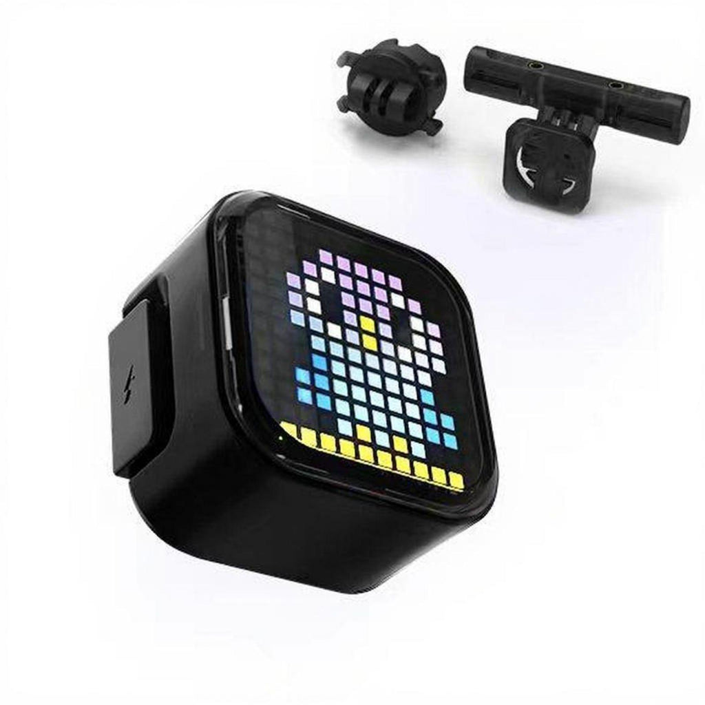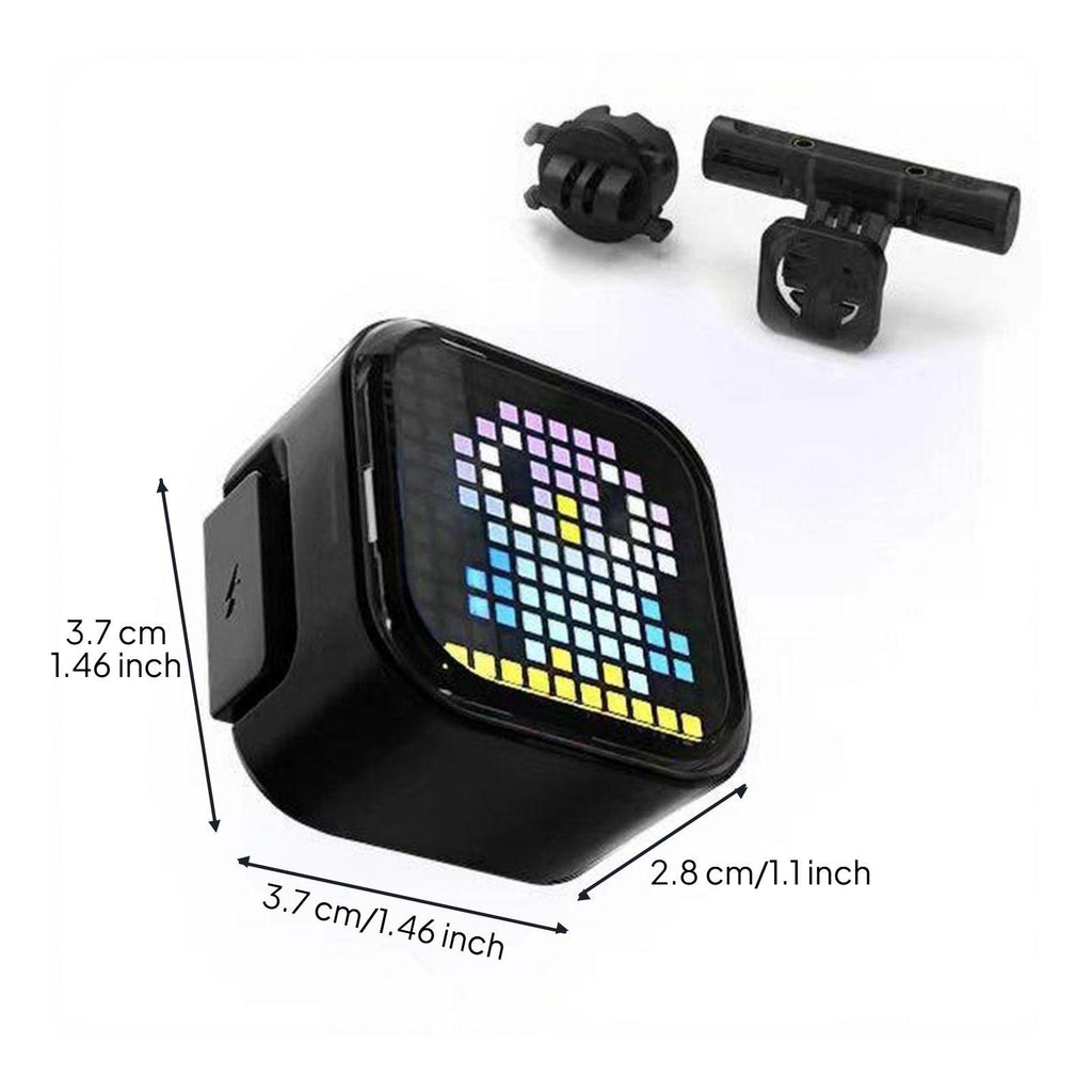 [Smart light-emitting diode Bike Light for Night Riding] Enhance your cycling experience with this highbrightness rear bike light featuring smart brake detection and a programmable light-emitting diode display. Perfect for night rides, mountain bikes, street bikes, and urban bikes. [Multiple Lighting Modes & Waterproof Design] Equipped with 6 lighting modes and IPX6 waterproof, this bike taillight ensures visibility and reliability in various weather conditions, making it perfect for offdoor cycling and recreation. [Universal Serial Bus-C Rechargeable & High Lumens] Enjoy extended brightness with a Universal Serial Bus-C rechargeable battery and high lumen offput, providing clear alerts and visibility up to 150m for both adults and children. [Easy Installation & Versatile Use] The adjustable rubber strap allows for quick mounting on luggage racks, mountain bikes, street bikes, and more. Perfect for day and night riding, offering and convenience. [Programmable Display & App Customization] Personalize your ride with app-controllight-emitting diode light-emitting diode text, designs, and animations on the light-emitting diode display screen, making your bike stand off during recreational and leisure rides.Specification: