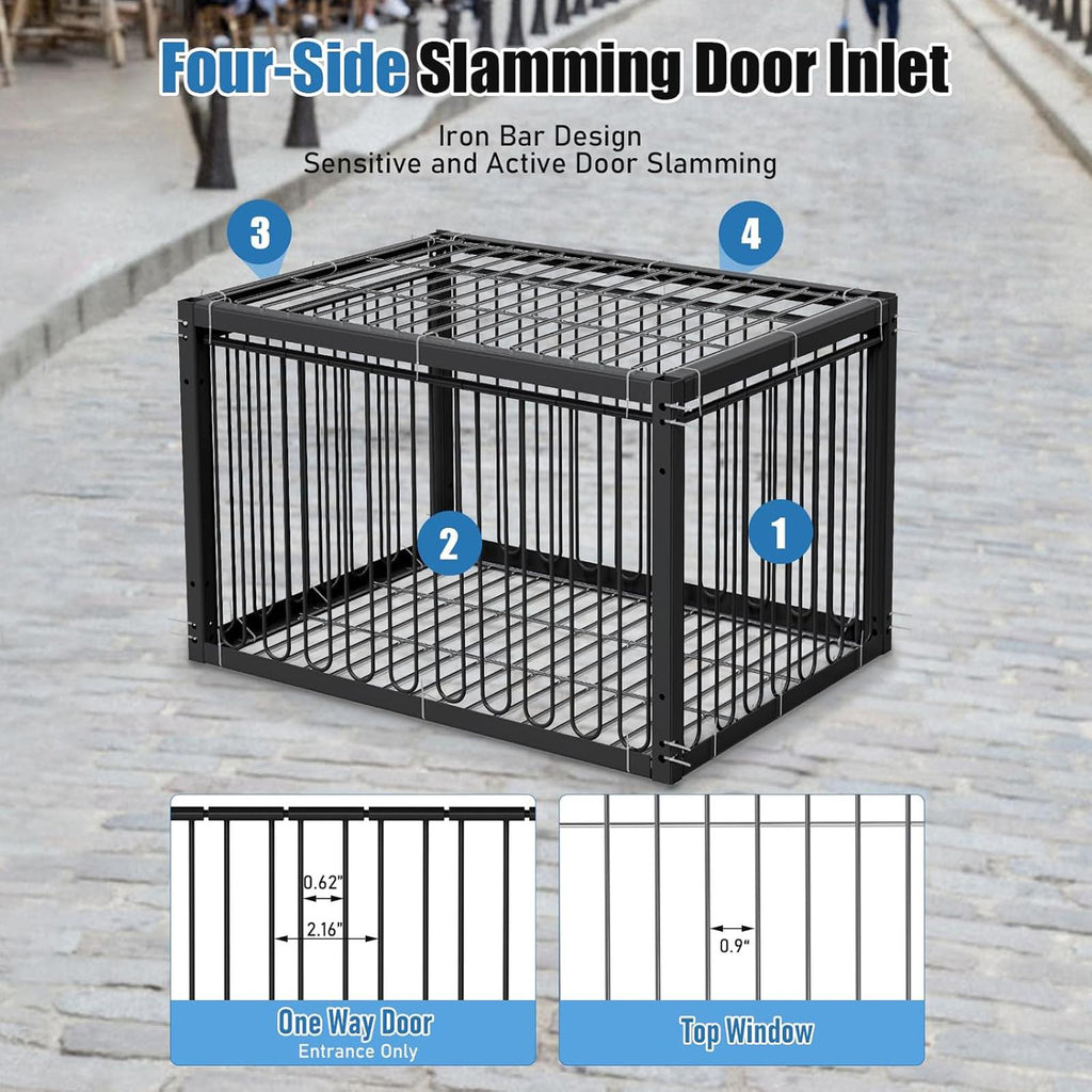 Maxbell Bird Cage Portable Metal Automatic Pigeons Collector for Feral Parrots Doves without skylight 4 Entrance
