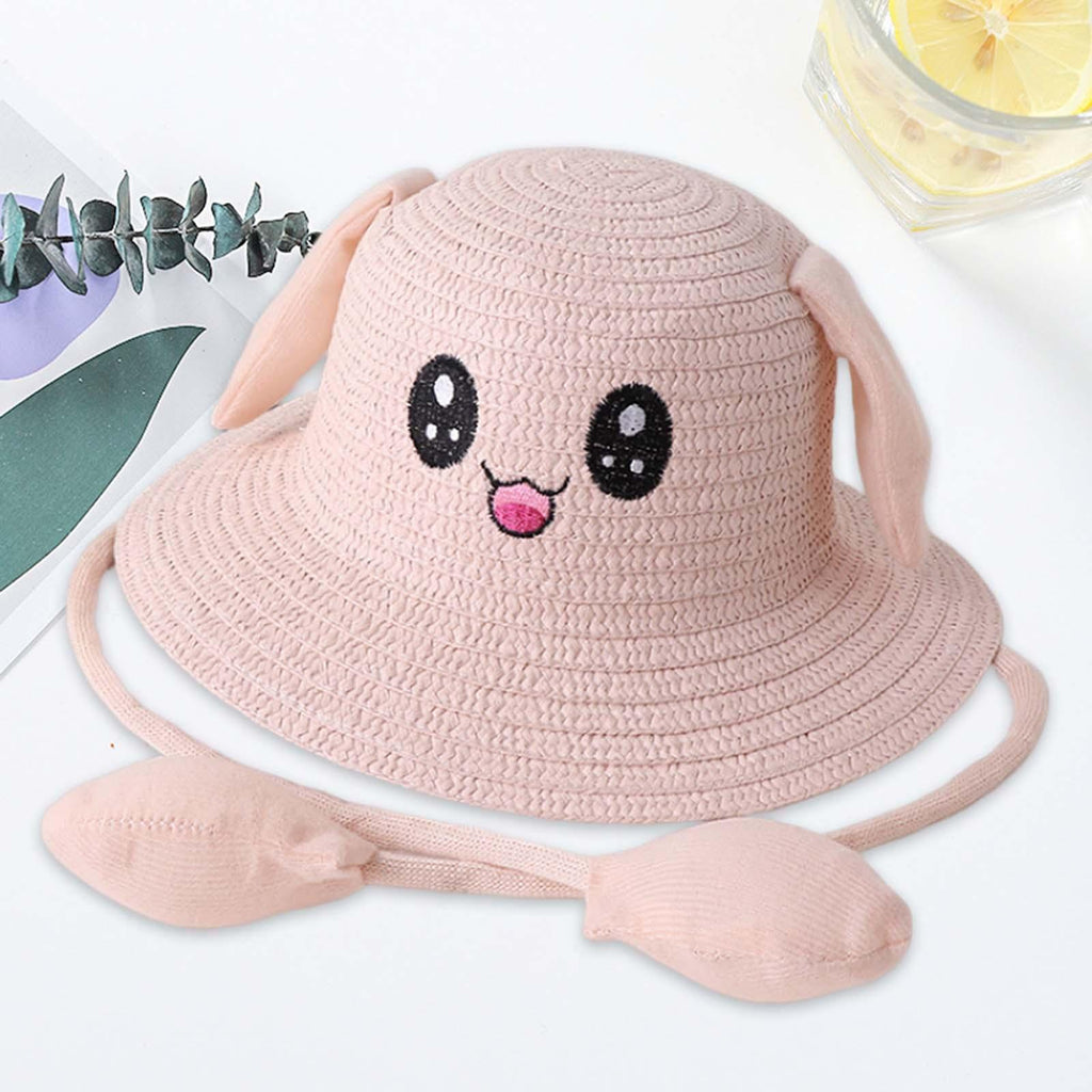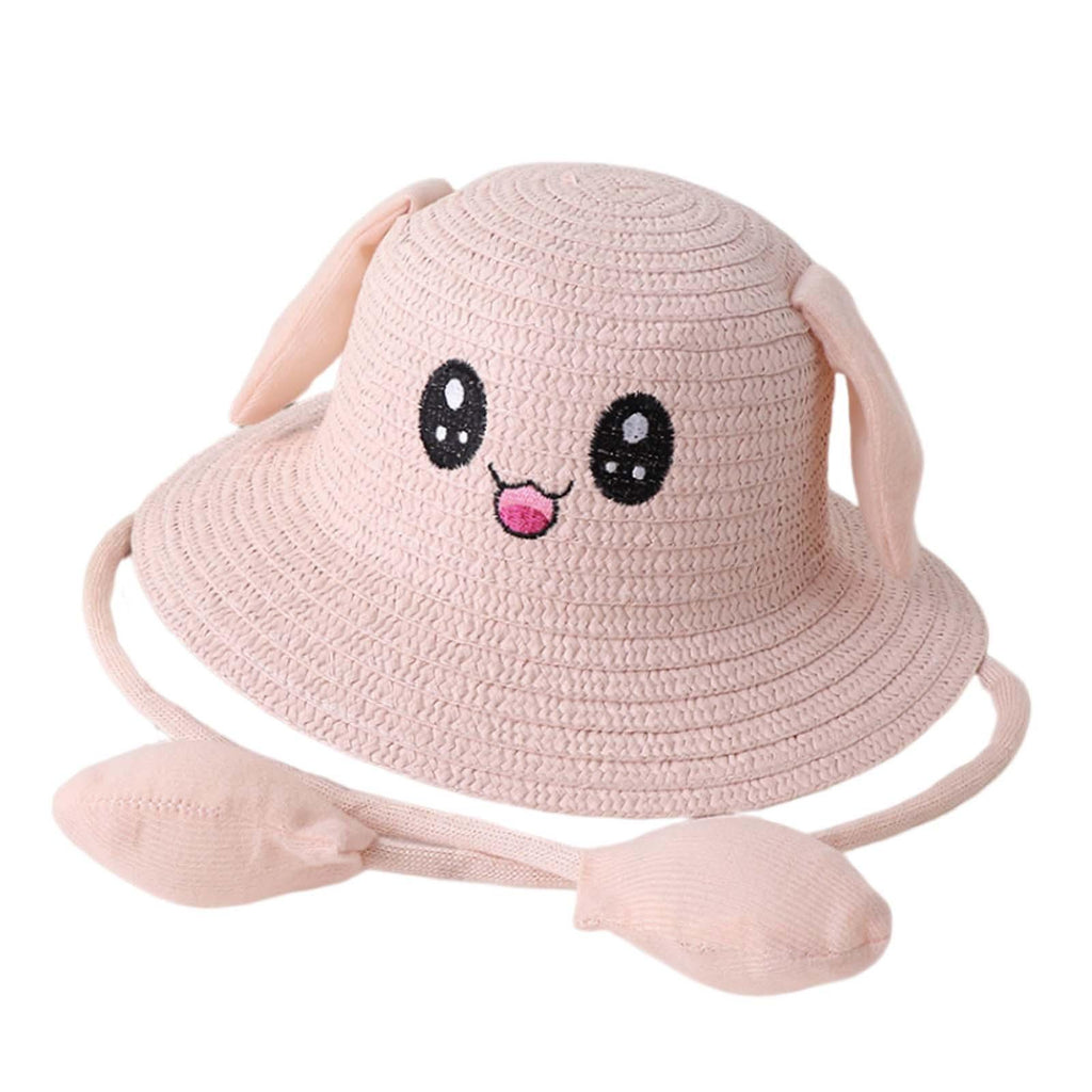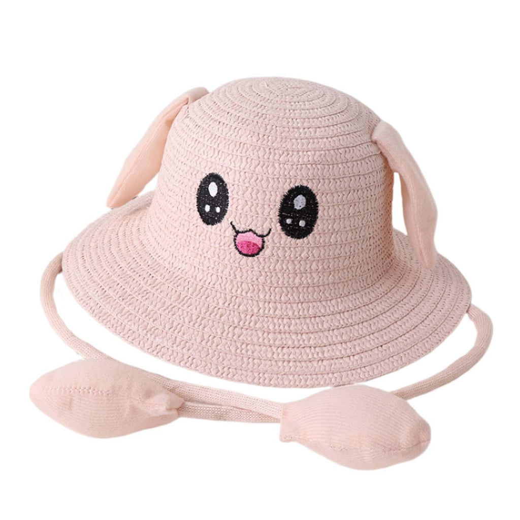 Maxbell Bunny Ears Straw Hat Cap Wide Brim Children Beach Hat for Beach Summer Trips Light Pink