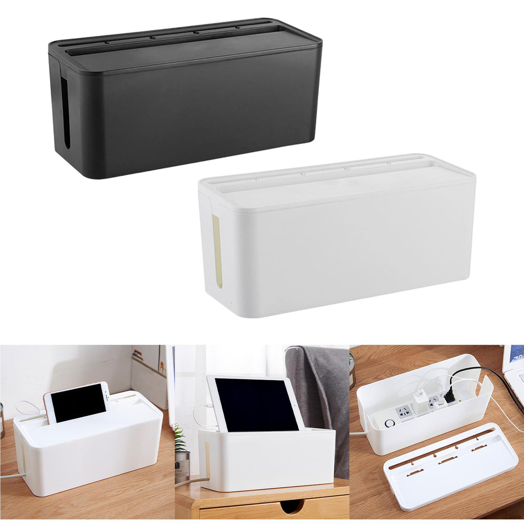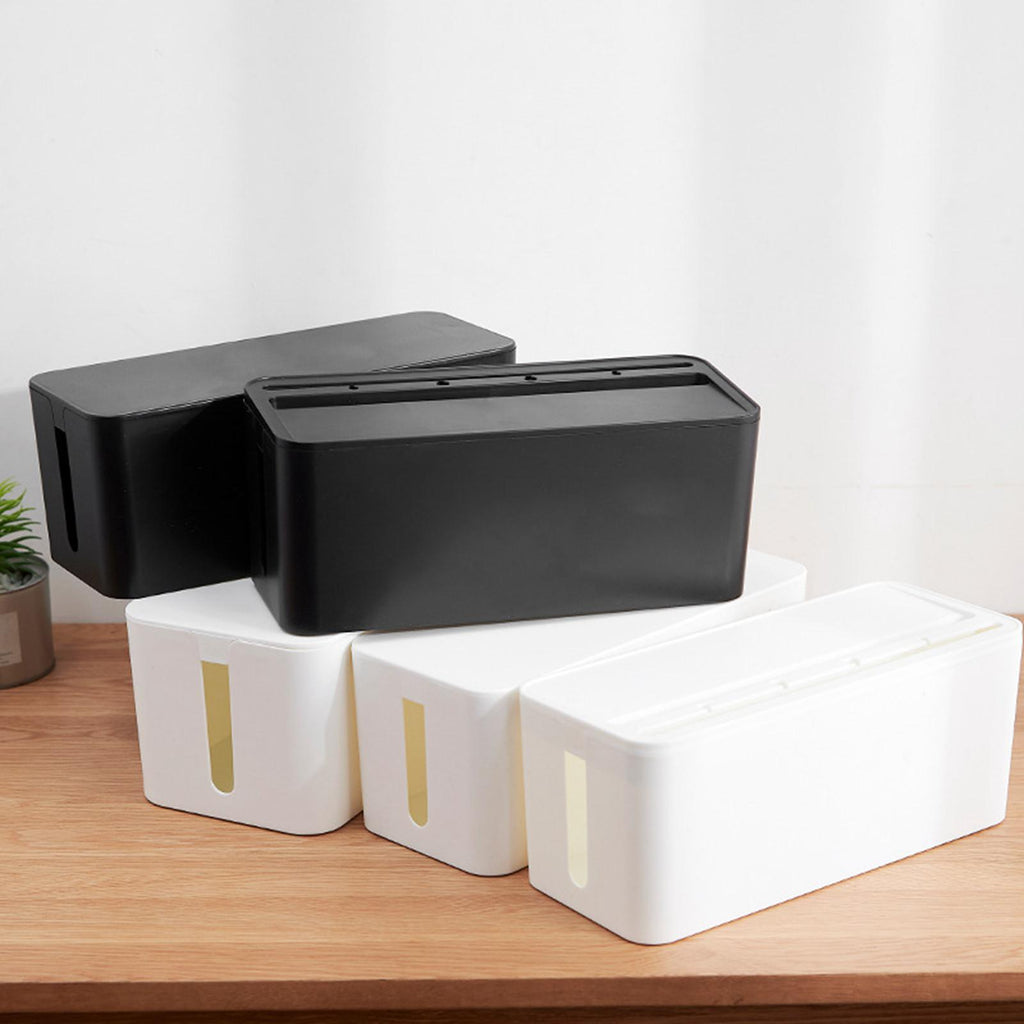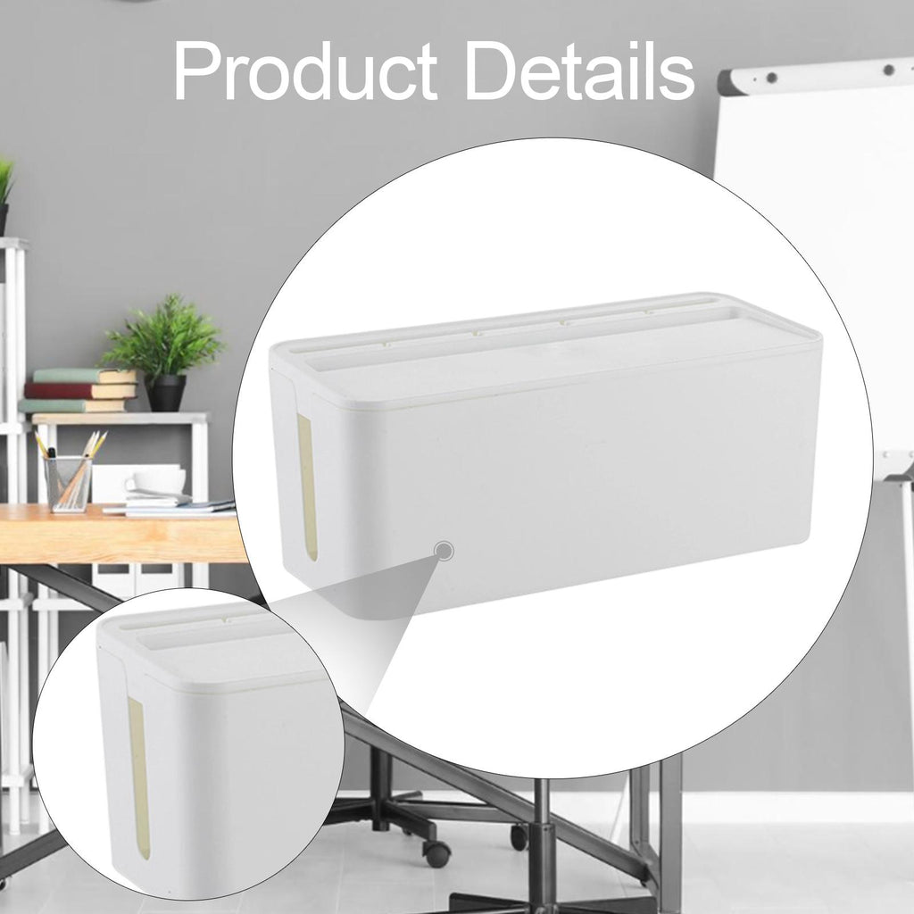 Cable Management Box Reusable Cord Cover Box for Bedroom Loose Wires Desktop White