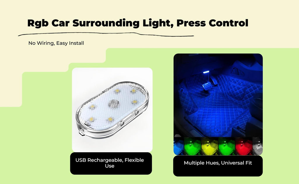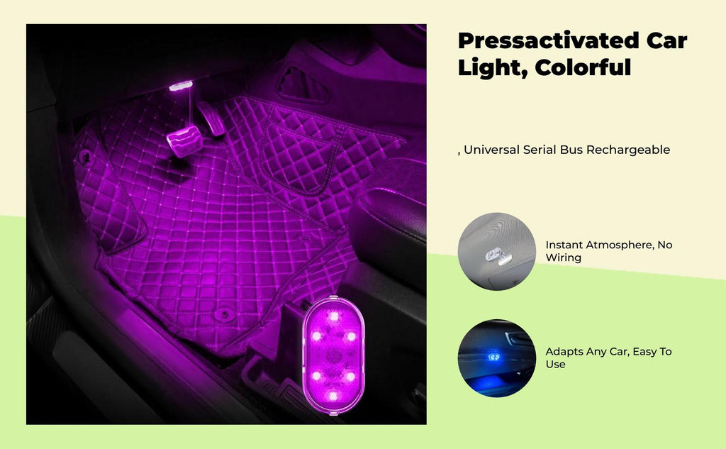 [Car Interior Ambient Light for Enhancement] Enhance your vehicle's interior atmosphere with this light-emitting diode ambient light, perfect for footwells, boots, and overall interior decoration. Its easy installation and design make it compatible with a variety of sedans. [Multiple Lighting Modes and Adjustable hues] Customize your space with multiple lighting modes and adjustable RGB hues, perfect for parties, camping, or everyday driving. The light-emitting diode technology ensures bright lighting and energy effectiveness. [High-Quality Material and sturdy Construction] Made from and PC materials, this car ambient light delivers long performance and dependable durability for common use. [Versatile and Practical Applications] Suitable for cars, pickup pickups, SUVs, and even home settings such as bedrooms or study areas, this light adds a stylish feel to any environment. [Rechargeable and Convenient Control] Features both remote and app control choices, an easy-to-recharge battery for hassle use, and a flexible installation design.