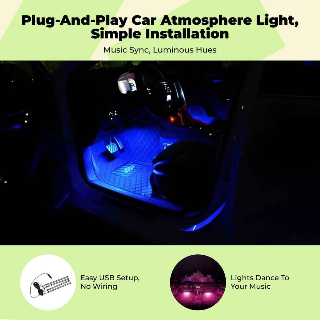 Car Ambient Light, light-emitting diode Interior Strip, Music Sync, App Control, RGB RGB 1-to-4 48 Lights