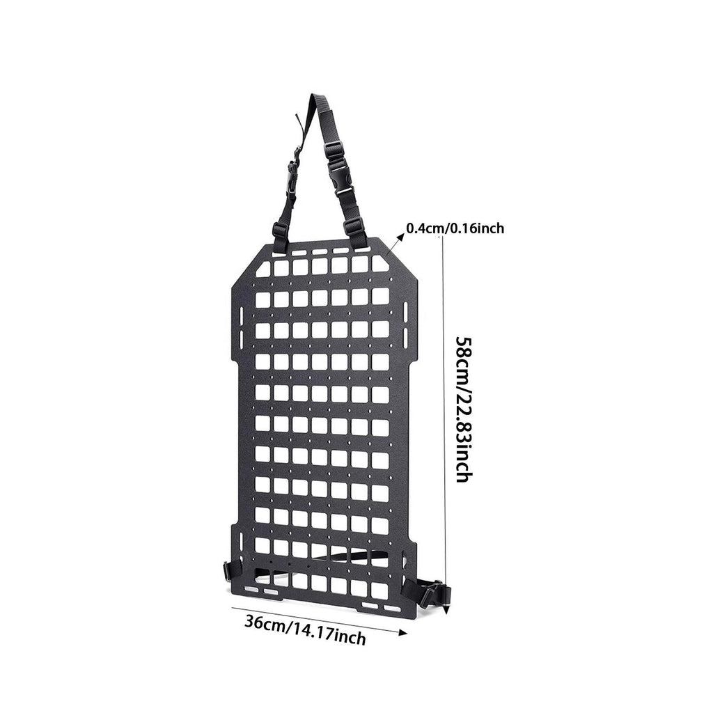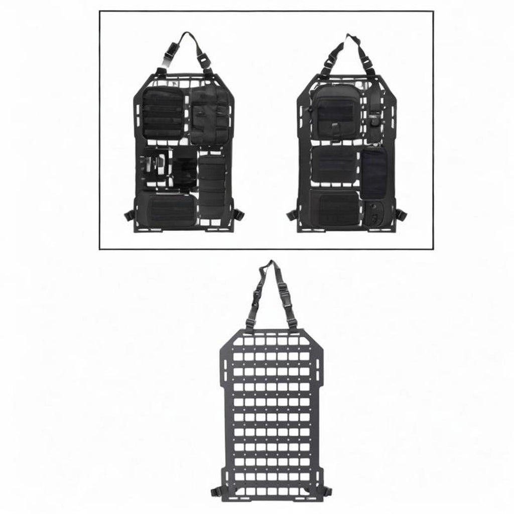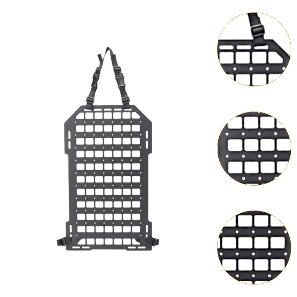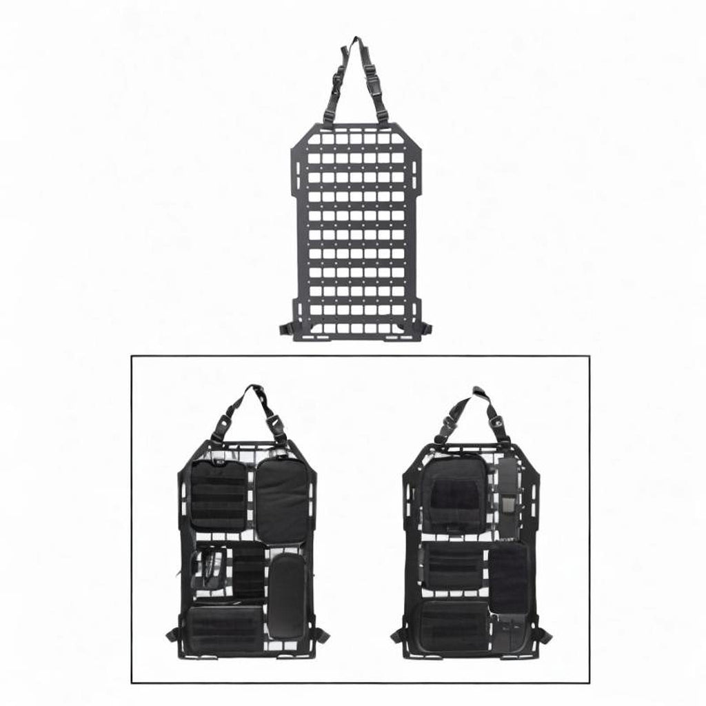 【 Seat Back Organizer】A practical storage plate for patrol car truck mount rack; Perfect for those items you need quick access to such as molle pouches, gadgets, emergency tools, flashlight, pens, sunglasses, etc