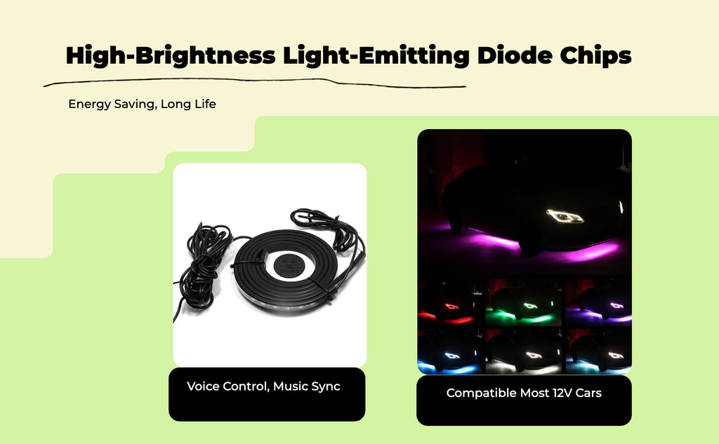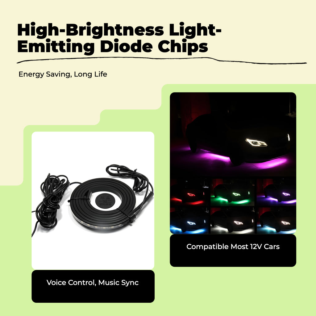 [Multicolor Car light-emitting diode Mood Light for Decoration] Enhance your vehicle's atmosphere with this waterproof light-emitting diode mood light, featuring voice control and enchanting flashing effects for a lively, customizable atmosphere. [Smart Voice Control & DIY Modes] Easily adjust lighting hues and effects using voice control or the app, supporting unlimited DIY hues and multiple modes for a personalized experience. [sturdy light-emitting diode Construction] Made with high-quality and light-emitting diode materials, this car light provides long lifespan and dependable performance for frequent use. [Versatile for Multiple Scenes] perfect for car interiors, parties, camping, and vehicle decoration, this mood lighting kit creates a lively environment for any occasion. [Energy Saving & Easy Installation] Operating at 12V-24V, this light-emitting diode strip is energy-efficient and simple to install, compatible with car adapters and port ports.Specification: