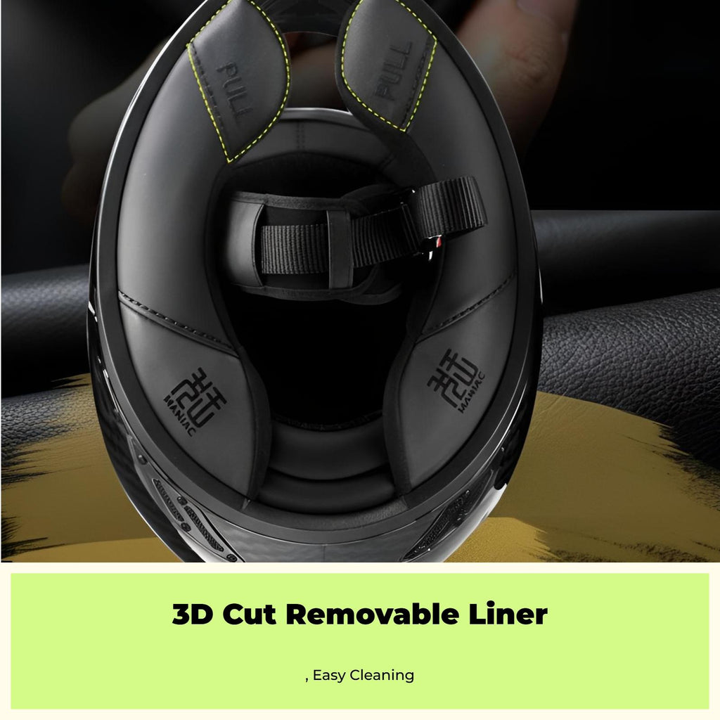 [Carbon Fiber Full-Coverage Helmet for All Seasons] Featuring a carbon fiber, full-coverage protection, and a retro design, this helmet is crafted for men and women who value and comfort during motorcycle rides and urban commutes. [Lightweight and Aerodynamic Design] The extremelylightweight construction with aerodynamic curves reduces wind drag, making it perfect for long-distance touring, street riding, and common use. [Certified for Enhanced Protection] Certified to meet standards, this helmet provides dependable protection for both competitive riders and leisurely users. [Comfortable and Practical Features] Includes a moisture-wicking liner, secure buckle fastening system, and ventilation system for comfort in all weather and throughout every season. [Adjustable Fit and Unisex Appeal] Suitable for both men and women, available in multiple sizes—perfect for electric bikes, scooters, mopeds, and cruisers.