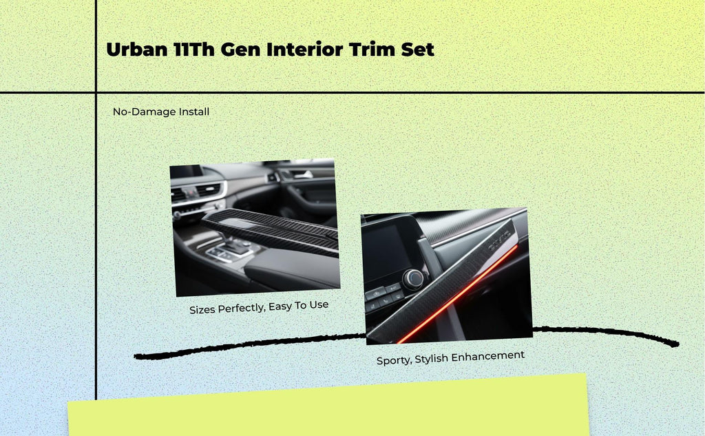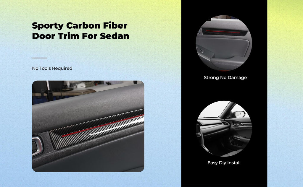 [Carbon Fiber Interior Trim Kit] enhancement your 11th Gen sedan with this carbon fiber-textured interior trim kit, designed for door panel decoration and protection. Enhance your car’s look and add a tinge of luxury to your vehicle’s interior. [Strong Practicality and Easy Installation] The personalized design allows for quick and effortless installation, perfect for car lovers seeking a distinctive and enhancementd appearance. [Comprehensive Door Panel Protection] Protects your door panels from scratches, wear, and common damage, helping maintain a clean, refined look. [Universal Fit for 11th Gen Sedan] Compatible with 11th Gen FE/FL4/R-Spec/FL5 sedan vehicle from 2022-2025, ensuring a precise fit and perfect integration. [Stylish and Functional enhancement] perfect for car modifications, this kit balances design and function, helping your vehicle stand stand while offering dependable protection.Specification: