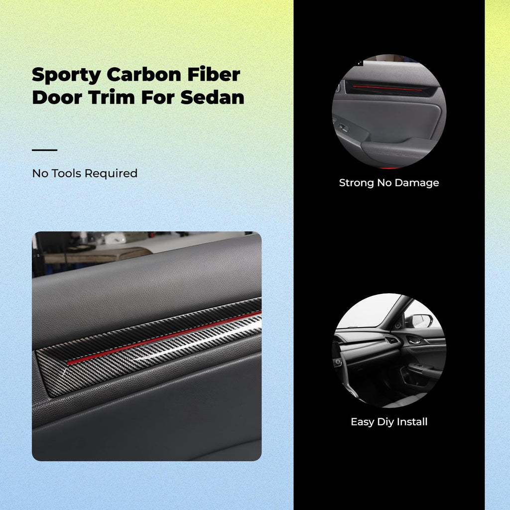 Carbon Fiber Interior Trim Kit, For 11th Generation Sedan, Door Panel Decoration Red Front Light Strip