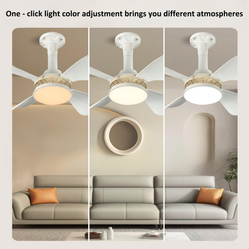【Adjustable Light Settings】: Easily adjust the light color of the fan lamp from warm light 3000K for cozy settings, neutral light 4000K for everyday use that balances warmth and brightness, or white light 6500K for clear and vivid illumination ideal for reading