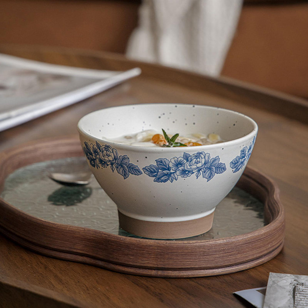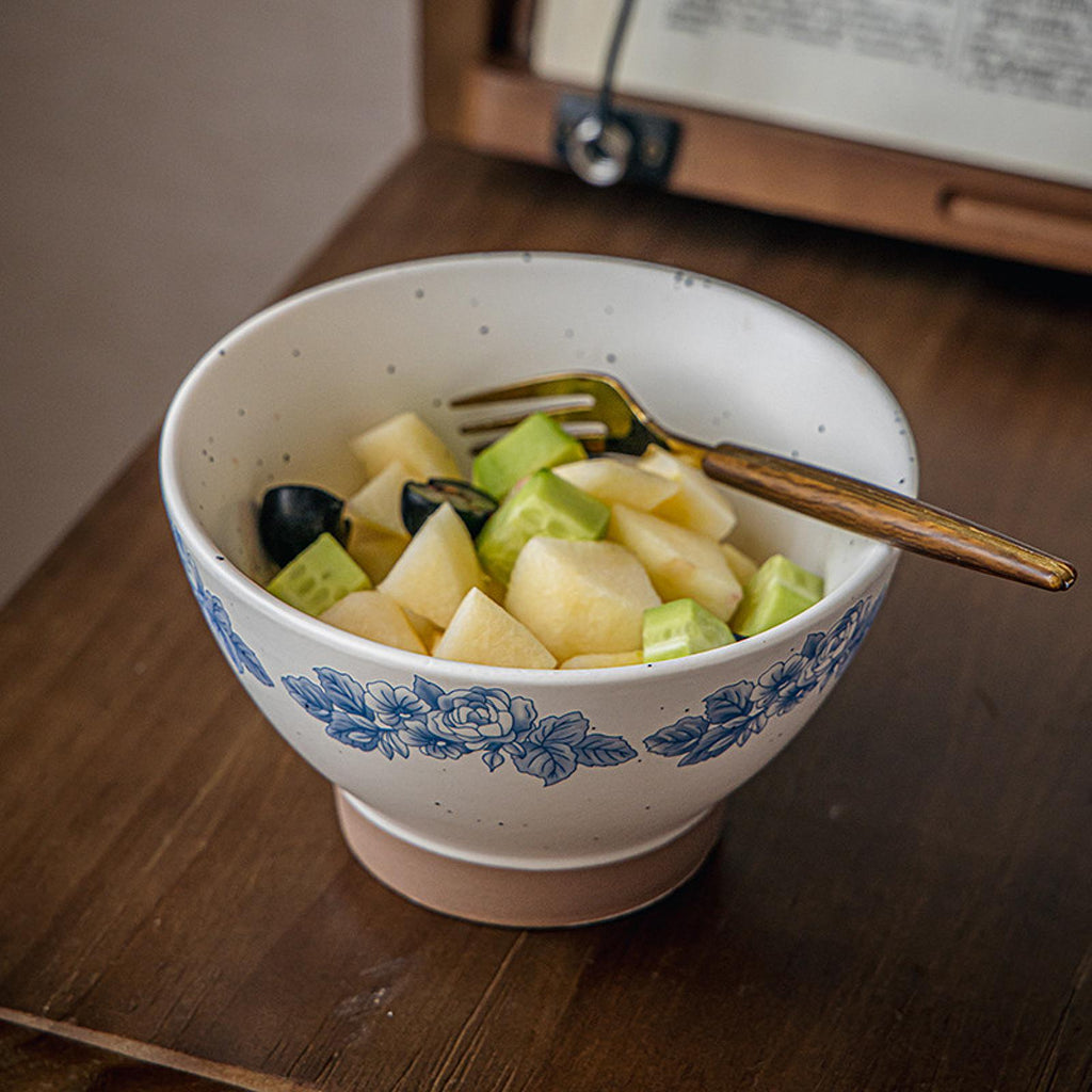 【Elegant Design】: This 5inch ceramic bowl features a beautiful blue and white floral pattern with a high footed design, adding a touch of elegance and ceremony to your dining experience