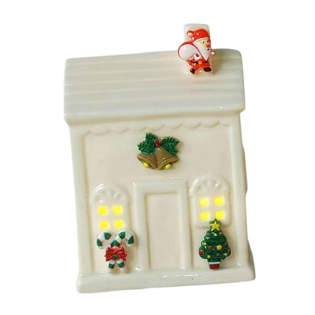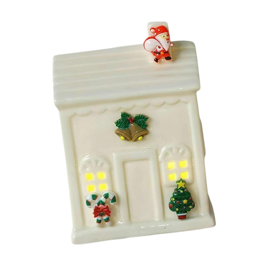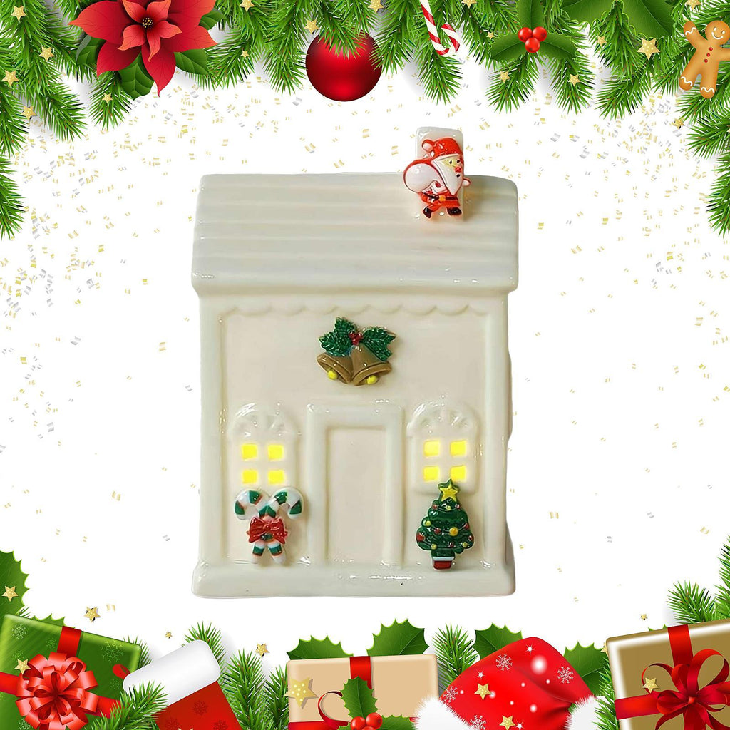 Maxbell Ceramic Christmas Village House White LED Warm Lights for Party Table Winter Style D
