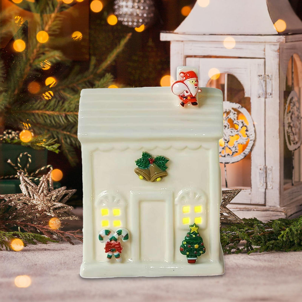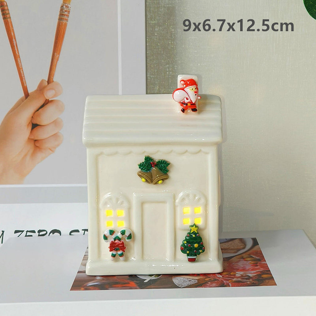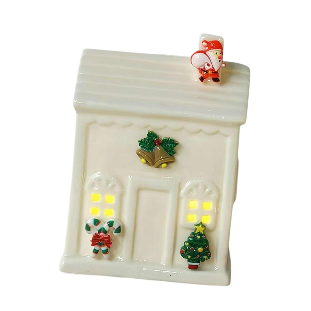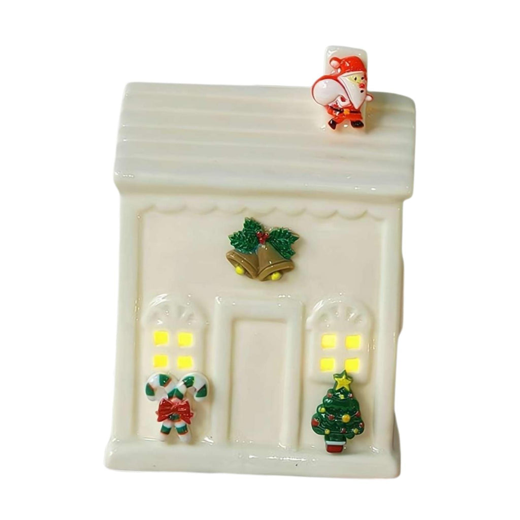Maxbell Ceramic Christmas Village House White LED Warm Lights for Party Table Winter Style D