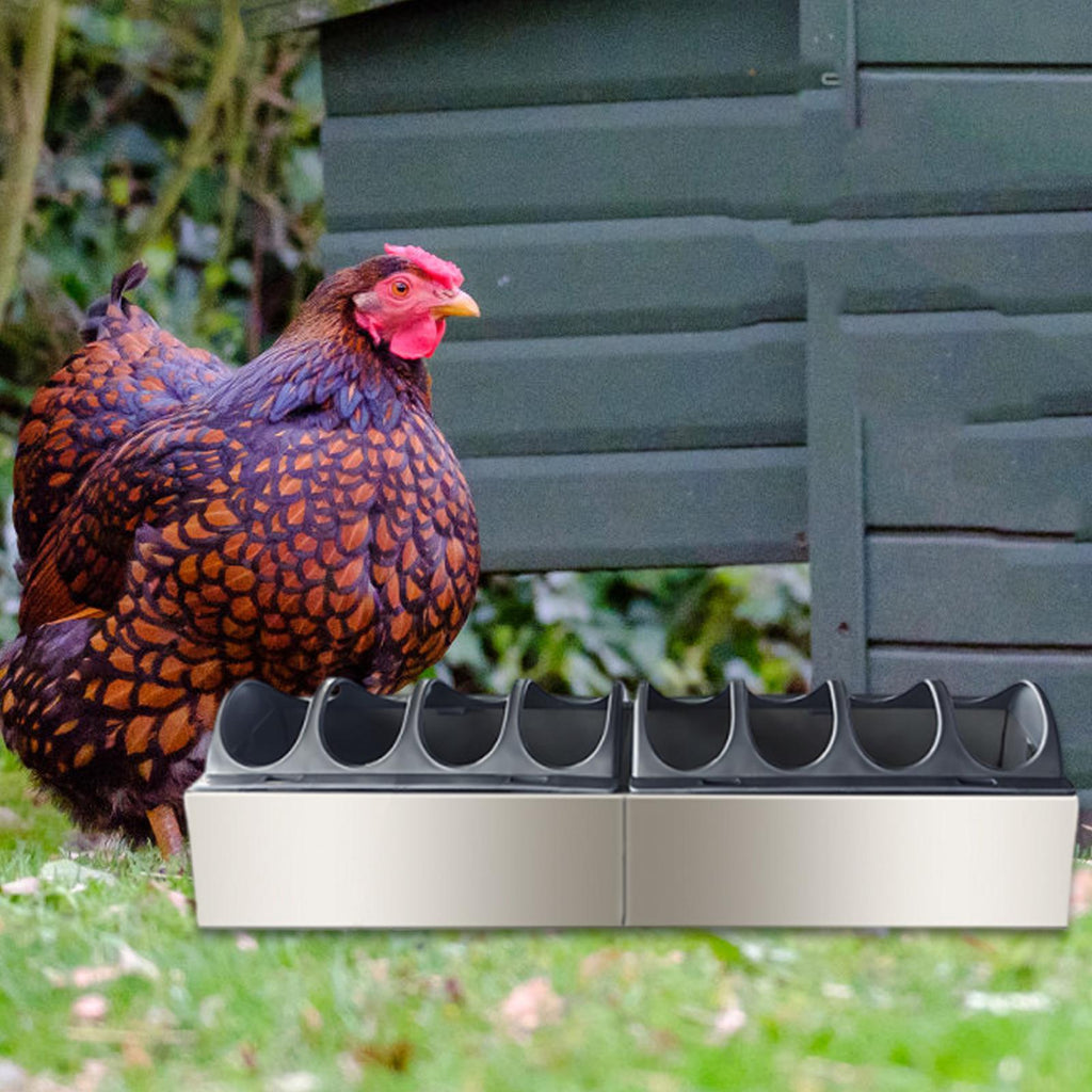 【Material】: Chicken Feeder  made from thickened,  stainless steel that resists deformation, rust, and wear, ensuring long term use in all seasons.