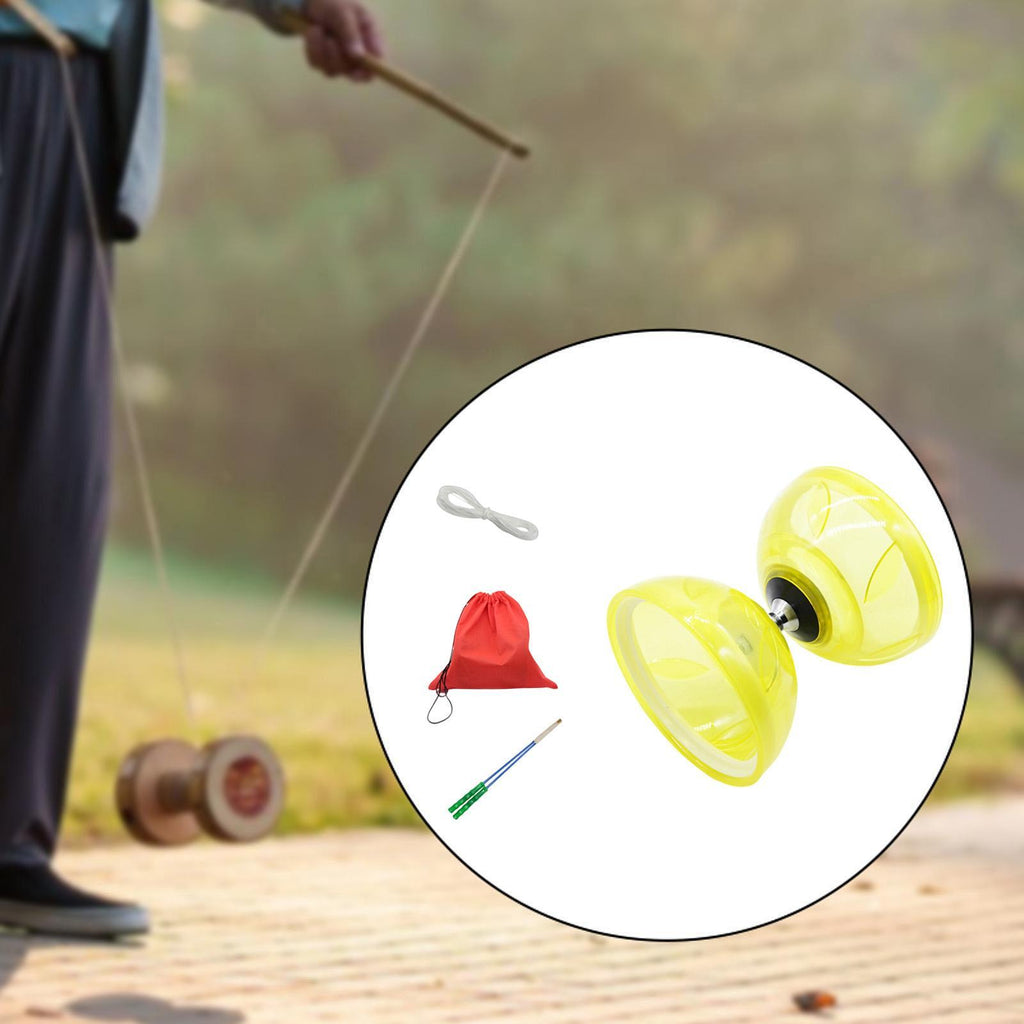 Maxbell Chinese Diabolo Set Portable Lightweight Chinese Yoyo for Children Lawn Park Yellow