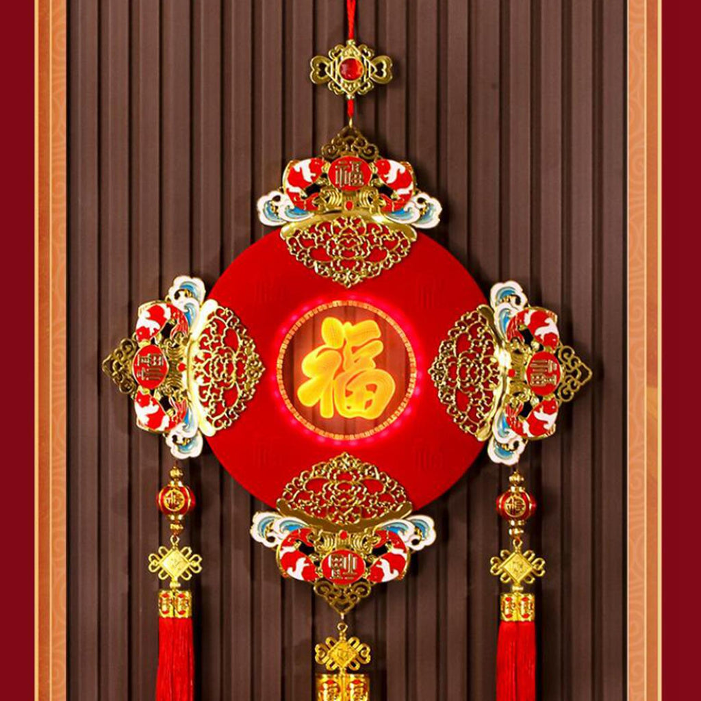 【Chinese New Year Decorations】2024 Chinese Dragon Year Hanging Decorations feature a traditional Chinese knot design with the FU character that lights up, adding a festive touch to your home during the Spring Festival.