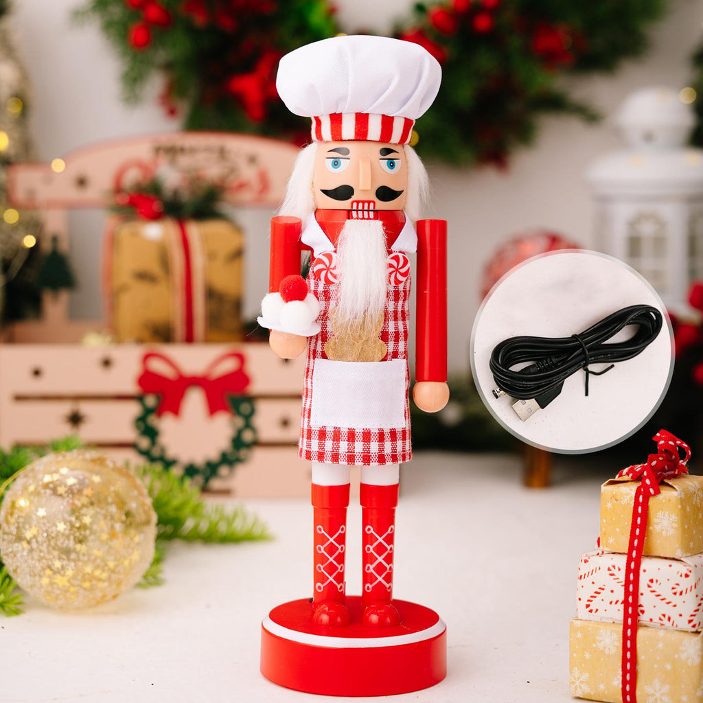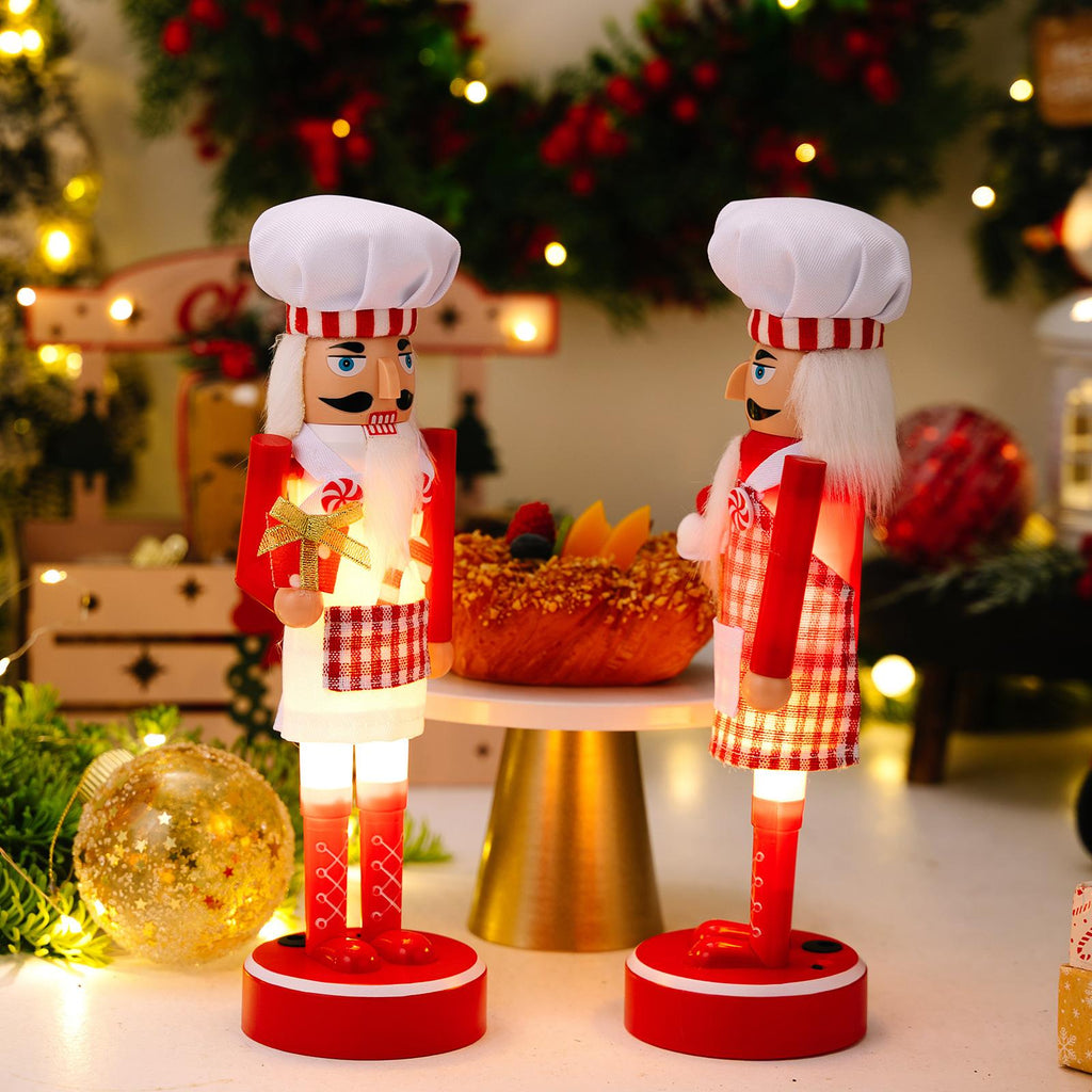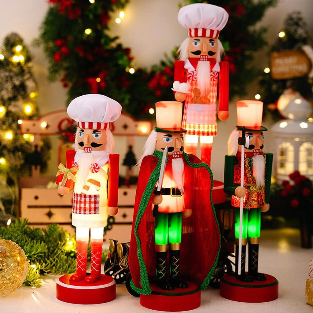 Christmas Nutcracker Figurine Built in Light for Home Halloween Thanksgiving Red White