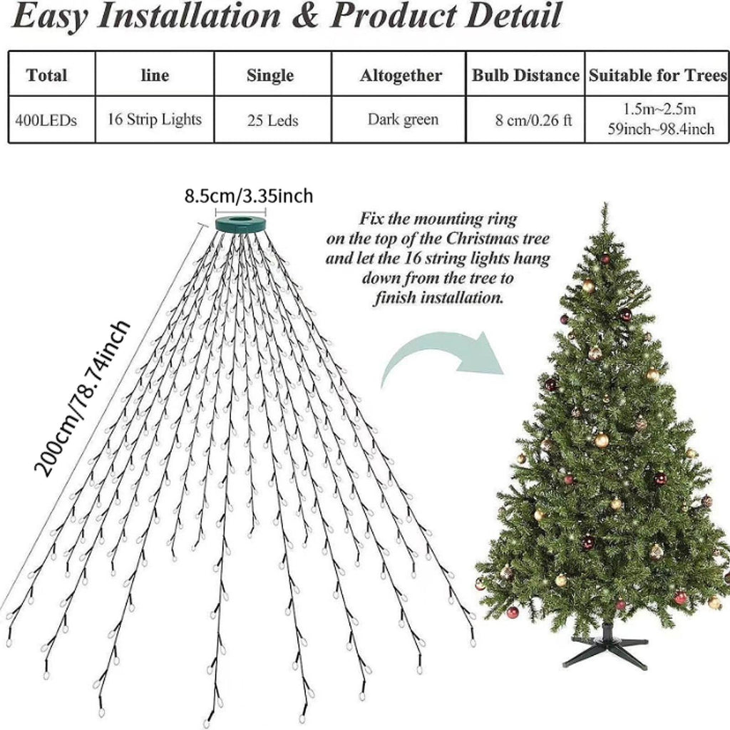 - 【Size】: The Christmas tree lights measures 2 meters in length, providing ample coverage to create a stunning waterfall lighting effect on trees or other decorations.