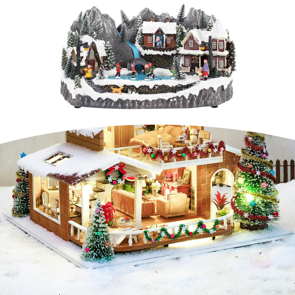 Maxbell Christmas Village House Figurine with Lights and Music for Shelf Living Room