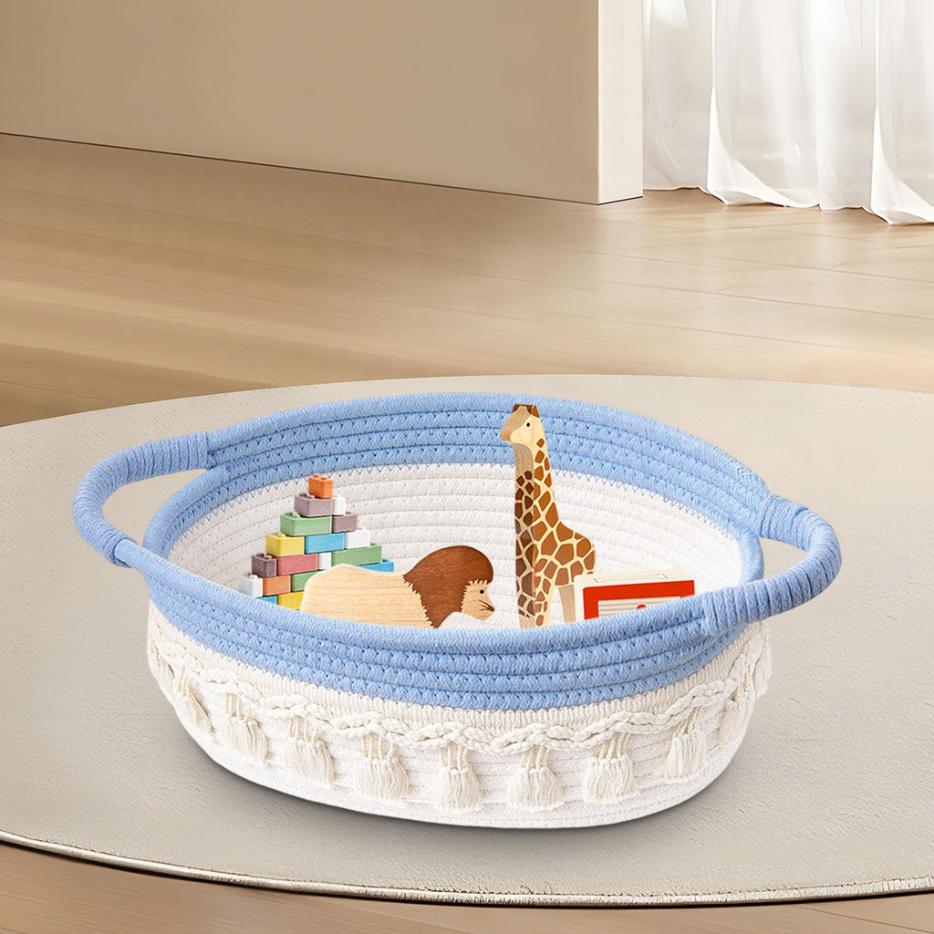 Maxbell Cotton Rope Woven Basket for Organizing Soft for Tabletop Bedroom Countertop Light Blue White