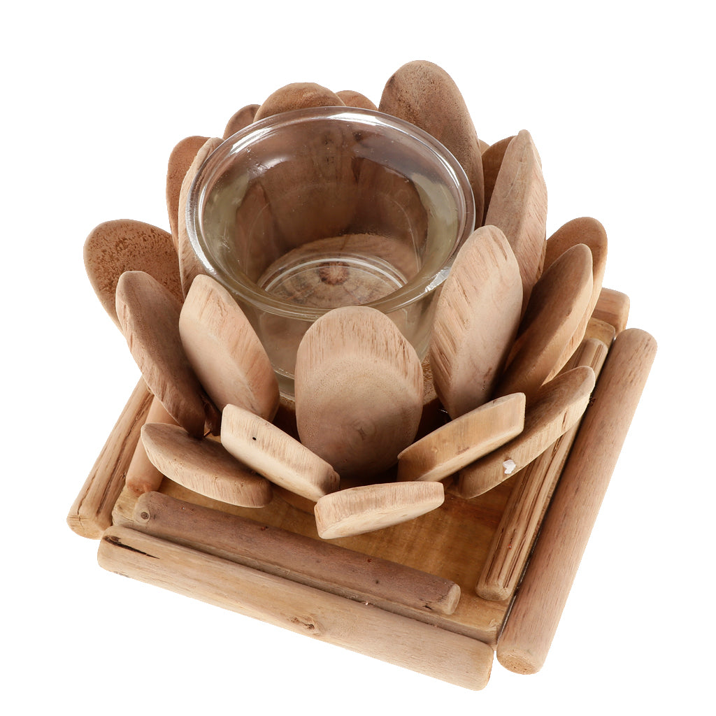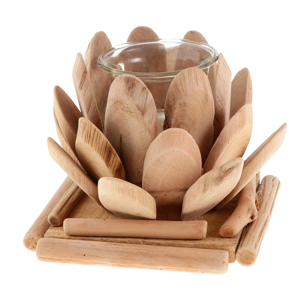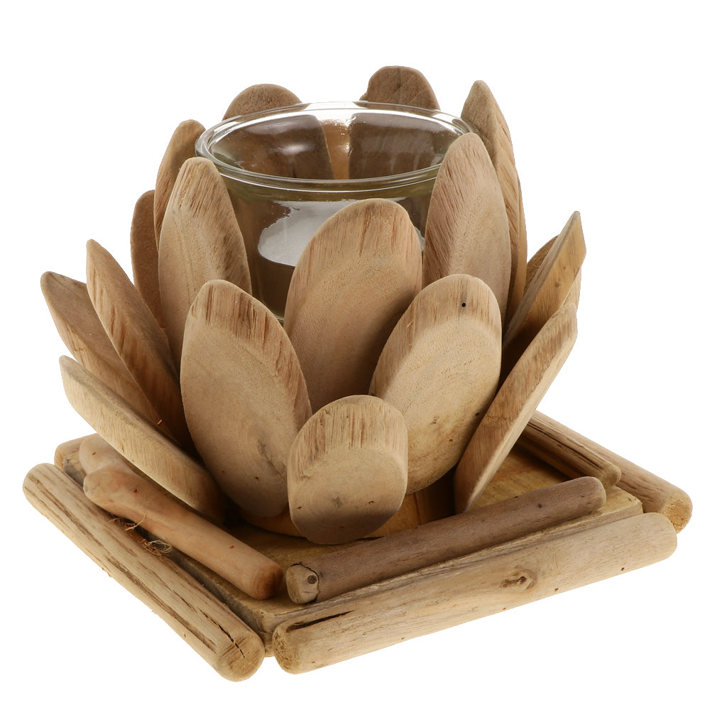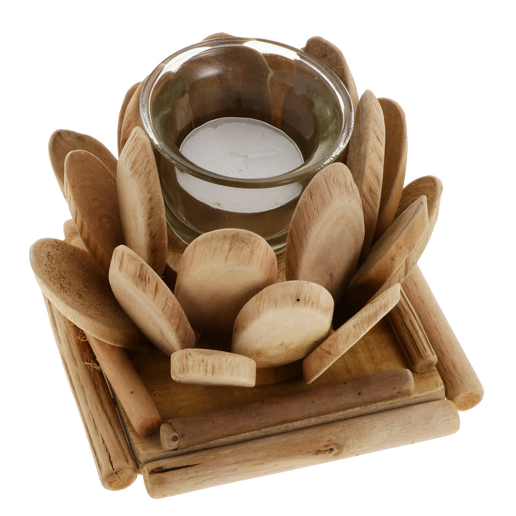 Maxbell Creative Wood Lotus Shaped Candle Holder Candlestick Tea Light Holder Decor