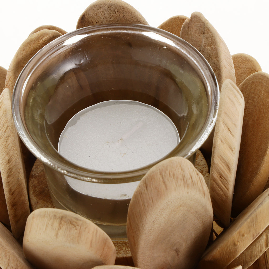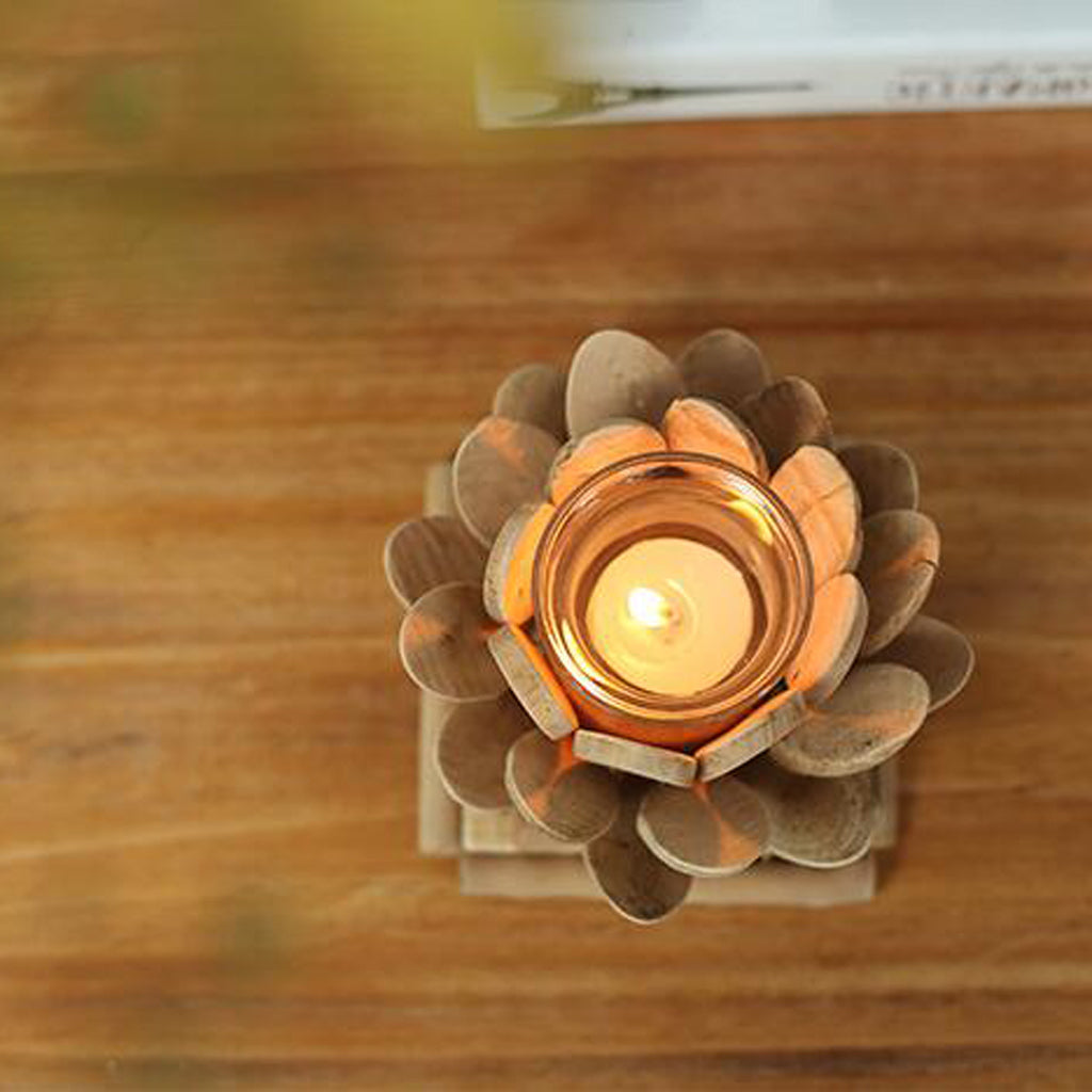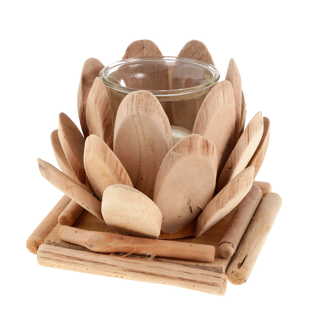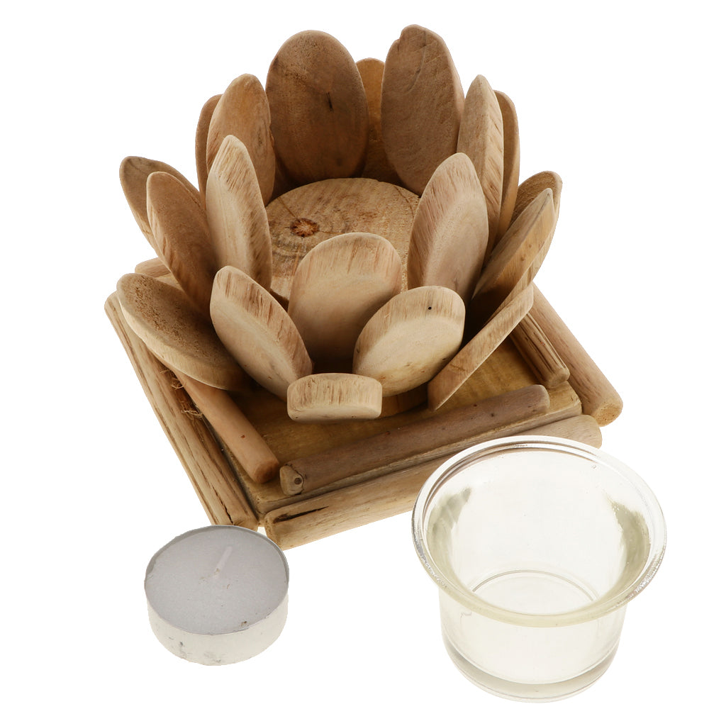 Maxbell Creative Wood Lotus Shaped Candle Holder Candlestick Tea Light Holder Decor