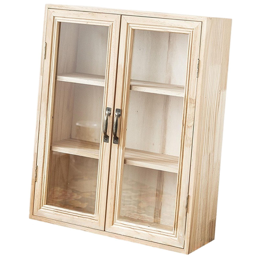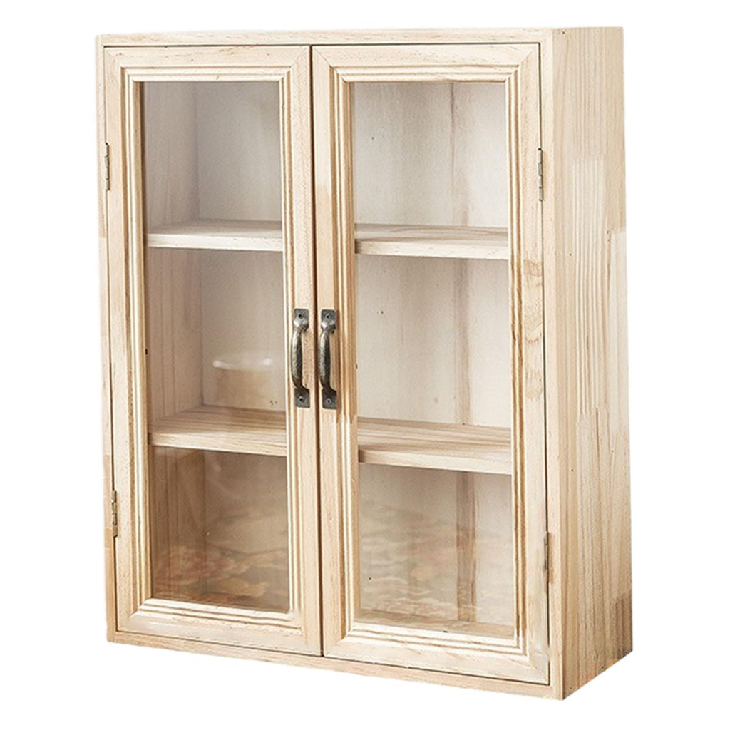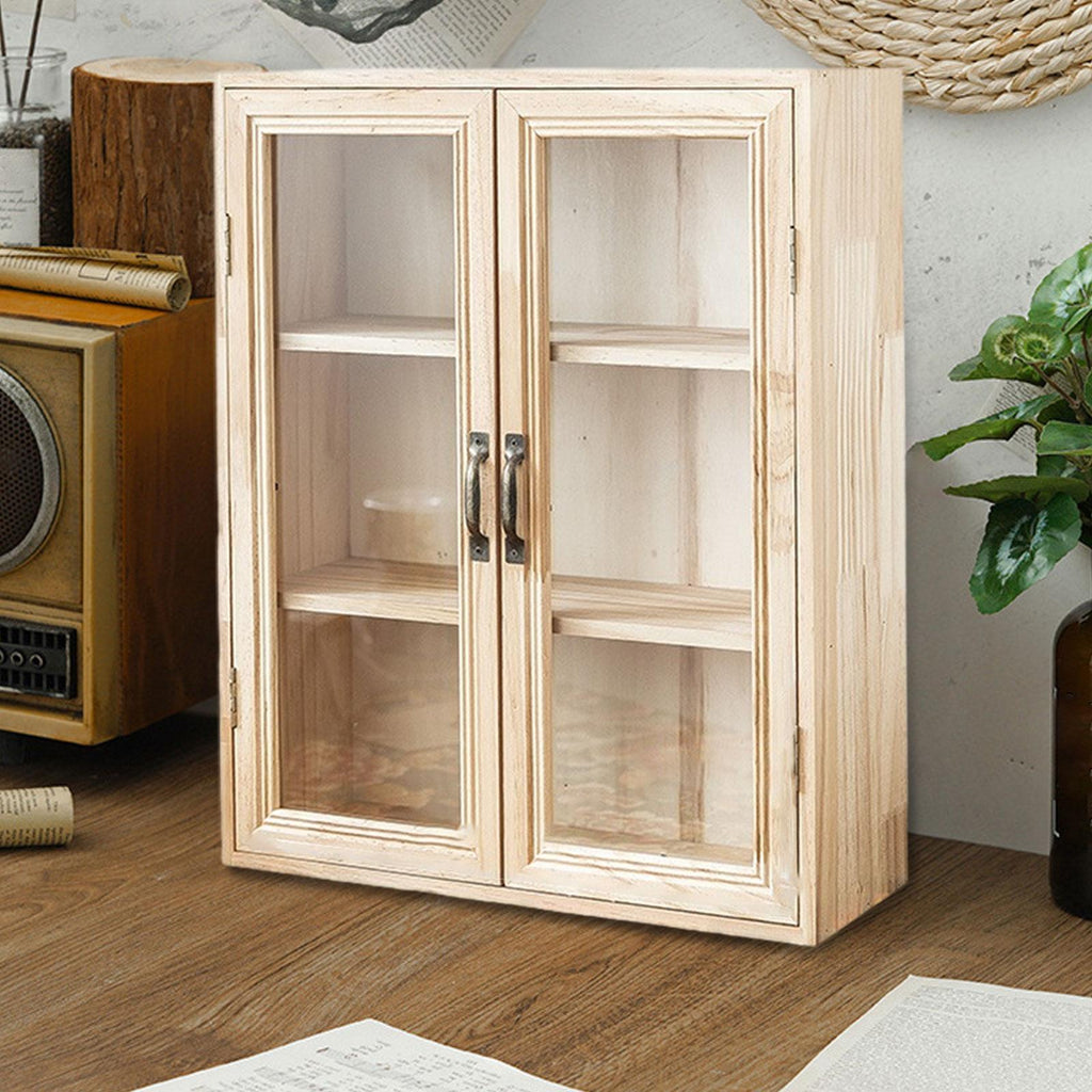 Desktop Storage Cabinet Wooden Rack Organizer for Bedroom Office Living Room Light Wood