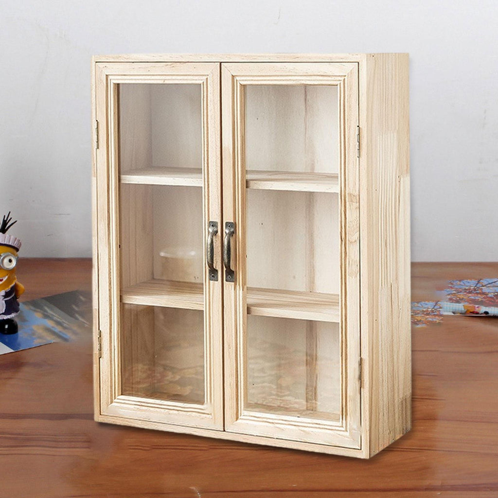 - 【Wooden Display Stand】: 3 Layer Wood Cabinet shelf is large capacity, high density, uniform structure, delicate and steady, simple handmade