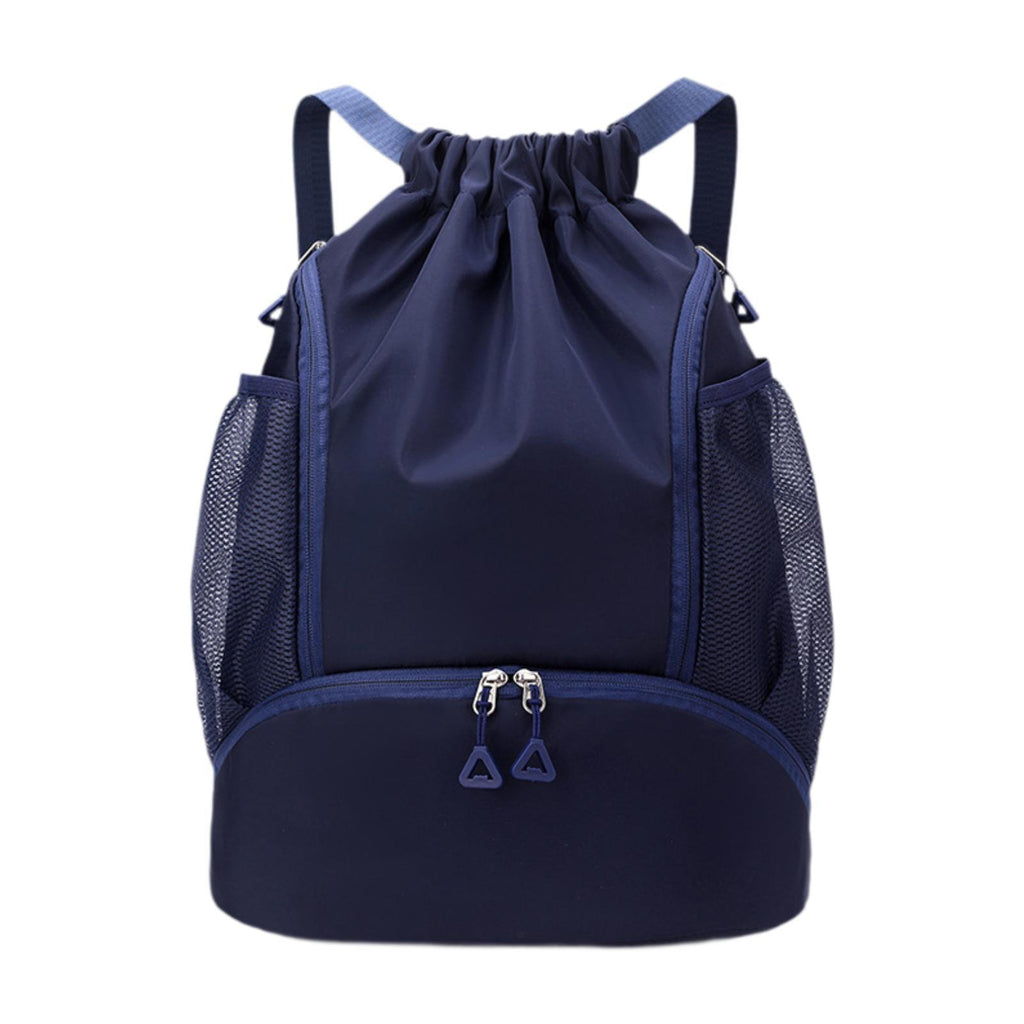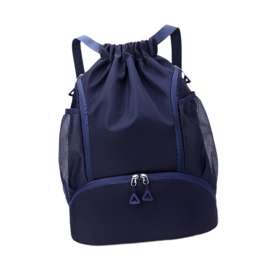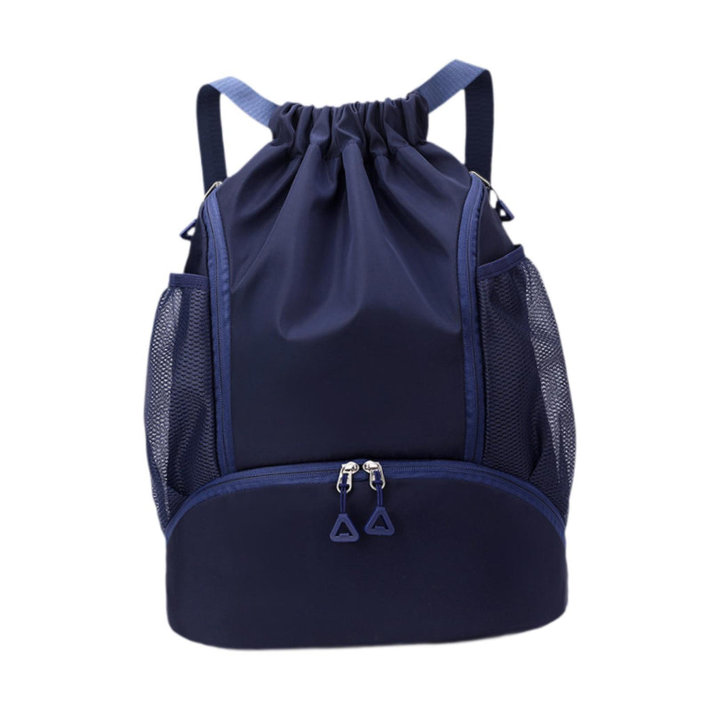 Maxbell Drawstring Backpack Basketball Lightweight Waterproof with Shoes Compartment Dark Blue