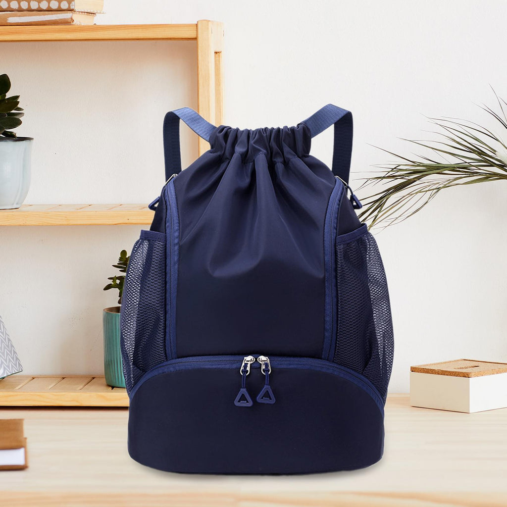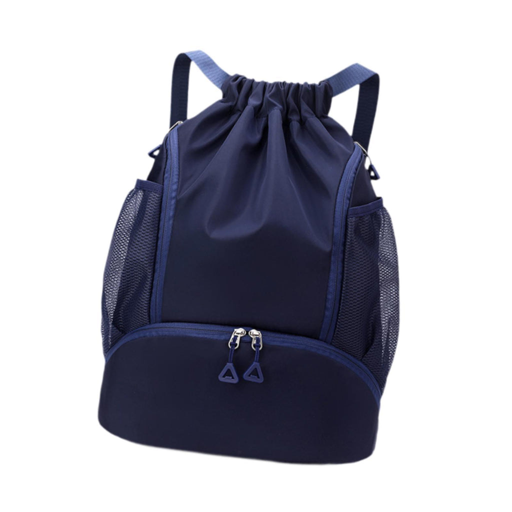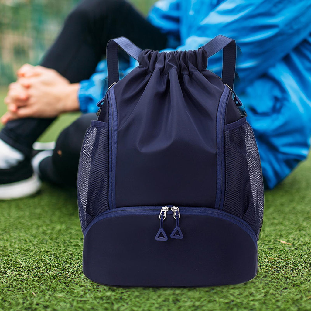 Maxbell Drawstring Backpack Basketball Lightweight Waterproof with Shoes Compartment Dark Blue