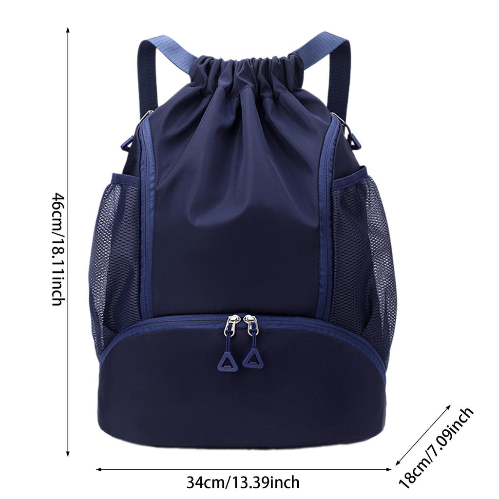 【Spacious with Organized Compartments】: Featuring a simple yet spacious design with practical internal compartments including side mesh pockets, a separate shoe compartment, side zipper pocket, and main drawstring pocket to keep your items organized