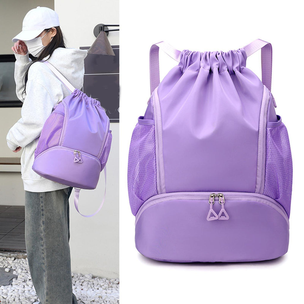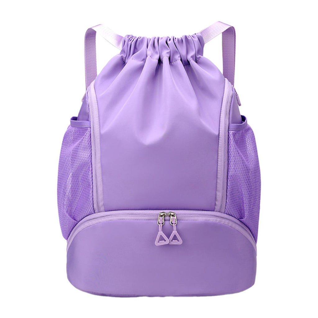 Maxbell Drawstring Backpack Basketball Lightweight Waterproof with Shoes Compartment Purple