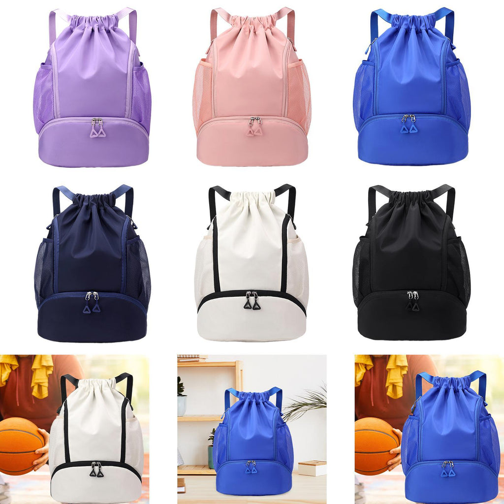 【Spacious with Organized Compartments】: Featuring a simple yet spacious design with practical internal compartments including side mesh pockets, a separate shoe compartment, side zipper pocket, and main drawstring pocket to keep your items organized