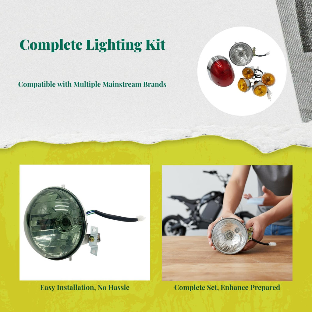 【Extremely Bright Ebike Lighting Kit】This set includes a headlight, taillight, and turn marker indicators, designed for enhanced lighting and improved visibility during night riding or in adverse weather conditions. 【sturdy Waterproof Construction】Crafted from high-quality materials, this lighting kit is waterproof and resilient, ensuring dependable performance in rain and tough environments. 【Easy Installation & Wide Compatibility】Compatible with most, the kit installs easily—just plug in for both front and rear lighting. 【Optimized for Riding 】The combination of headlight, taillight, and turn indicators boosts during night rides, rainy weather, and ordinary commutes, making it perfect for urban and residential areas. 【Complete Set for Practical Use】Comes with all components required for a full lighting enhancement, offering strong functionality and value for e-bike owners.Specification: