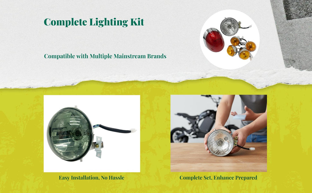 【Extremely Bright Ebike Lighting Kit】This set includes a headlight, taillight, and turn marker indicators, designed for enhanced lighting and improved visibility during night riding or in adverse weather conditions. 【sturdy Waterproof Construction】Crafted from high-quality materials, this lighting kit is waterproof and resilient, ensuring dependable performance in rain and tough environments. 【Easy Installation & Wide Compatibility】Compatible with most, the kit installs easily—just plug in for both front and rear lighting. 【Optimized for Riding 】The combination of headlight, taillight, and turn indicators boosts during night rides, rainy weather, and ordinary commutes, making it perfect for urban and residential areas. 【Complete Set for Practical Use】Comes with all components required for a full lighting enhancement, offering strong functionality and value for e-bike owners.Specification: