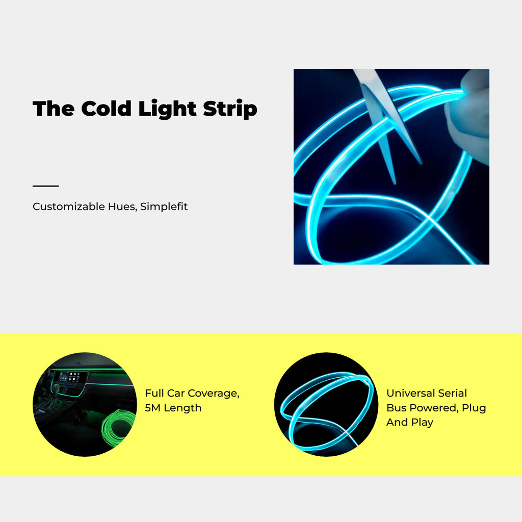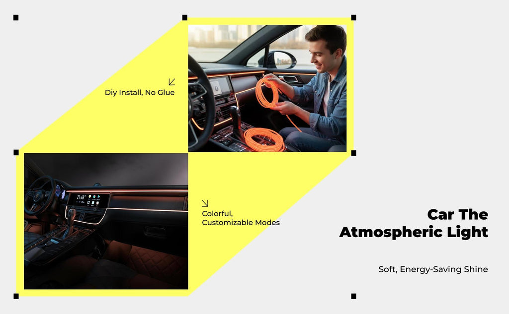 [Flexible Luminous Electroluminescent Wire for Car Interiors] This 5m electroluminescent wire provides a bright, glowing, and soft light, making it perfect for atmospheric car interior lighting and DIY decoration projects. Easily create a distinctive atmosphere for parties, celebrations, and event decorations. [Easy to Install and Use] Designed for straightforward installation, this electroluminescent wire can be bent, knotted, cut, and spliced to meet a variety of car decoration needs. The cool-to-thefeel material makes it suitable for both vehicle and indoor decorators. [Energy-Saving and hard-wearing] With low energy consumption and a steady-on design, this luminous strip is both energy-saving and long, making it perfect for continuous use in cars, homes, or at events. [Versatile Decorative Lighting] Perfect for car doors, dashboards, and instrument panels, this electroluminescent wire is also suitable for mood lighting at parties, Halloween, Christmas, and other celebrations. [Portable and Customizable] Thanks to its flexible design, the electroluminescent wire is portable and can be easily attached, cut, and linked to suit your creative needs for vehicle or indoor decoration.Specification: