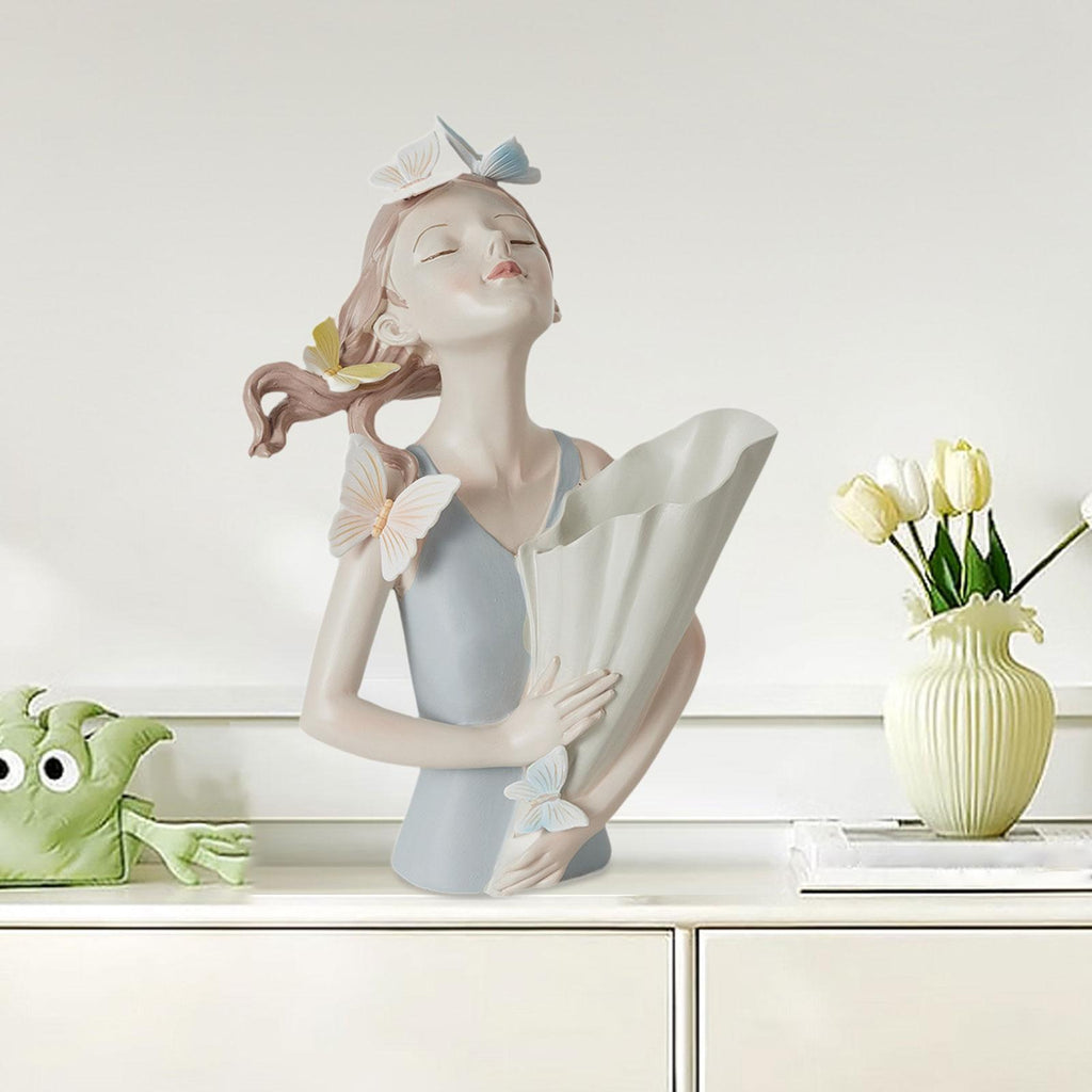 Maxbell Elegant Girl Statue Sculpture Floral Flower Pot for Home Office Living Room Light Blue