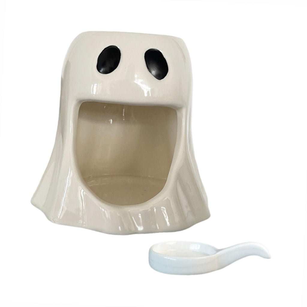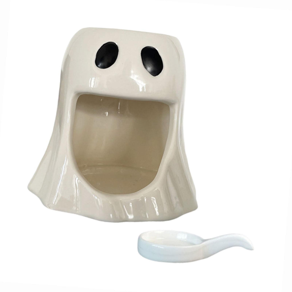 【Charming Halloween Decor】: This Ceramic Ghost Essential Oil Burner is designed to add a playful yet spooky touch to your Halloween decorations. Its adorable ghost shape perfectly blends a creepy atmosphere with a cute appearance, making it an ideal conversation starter during gatherings