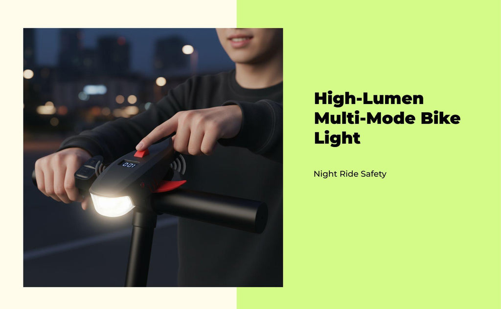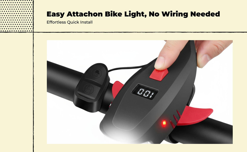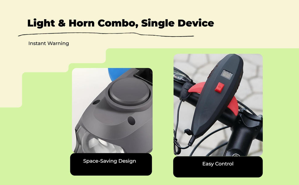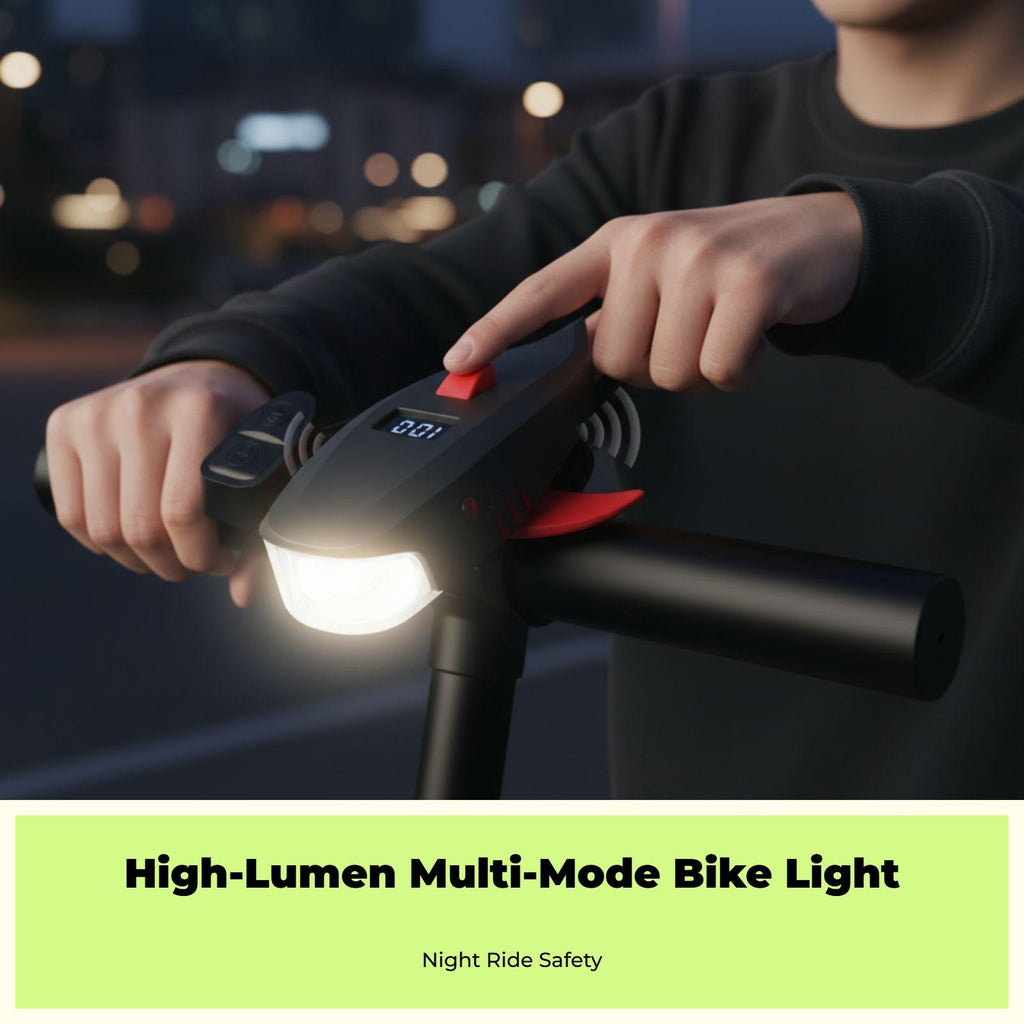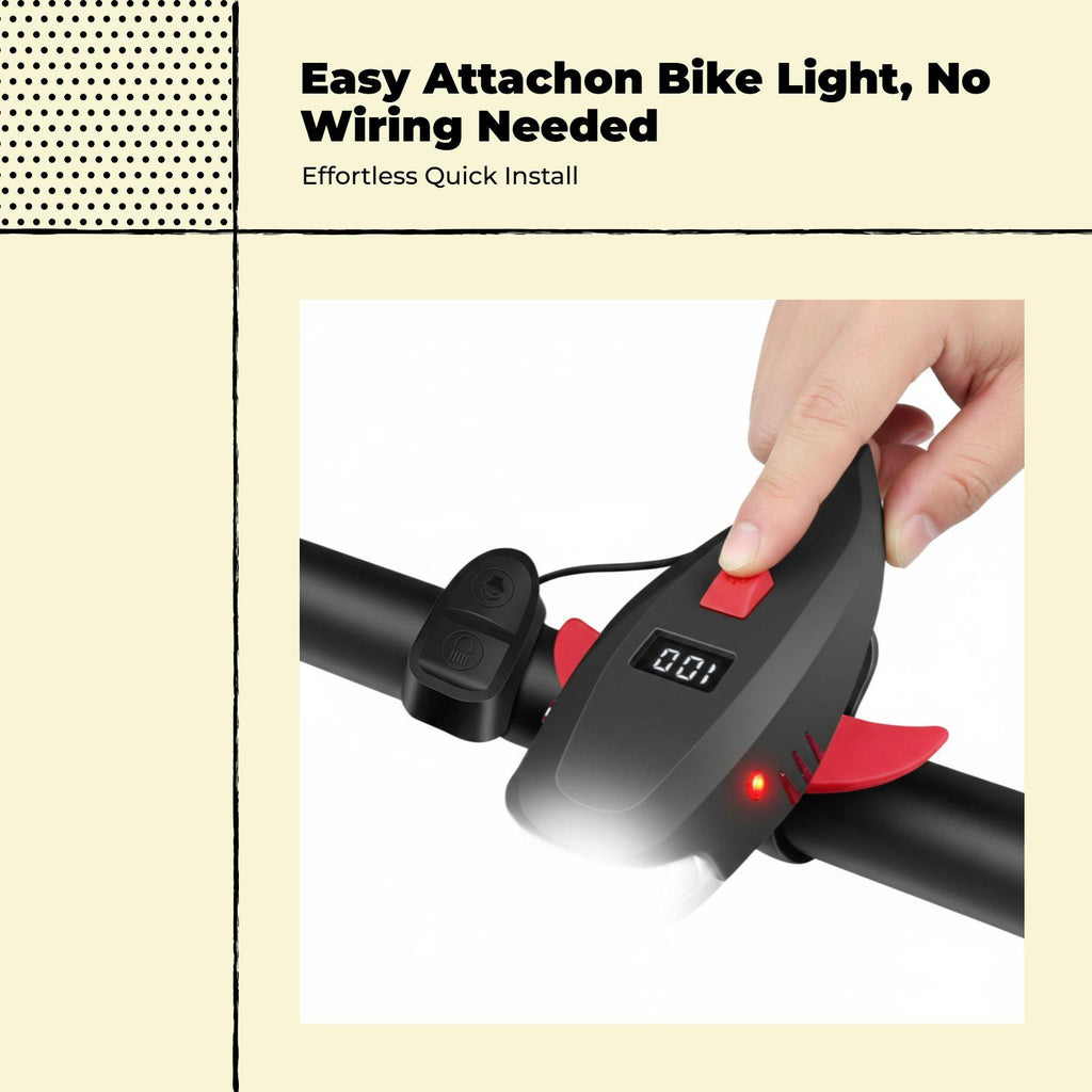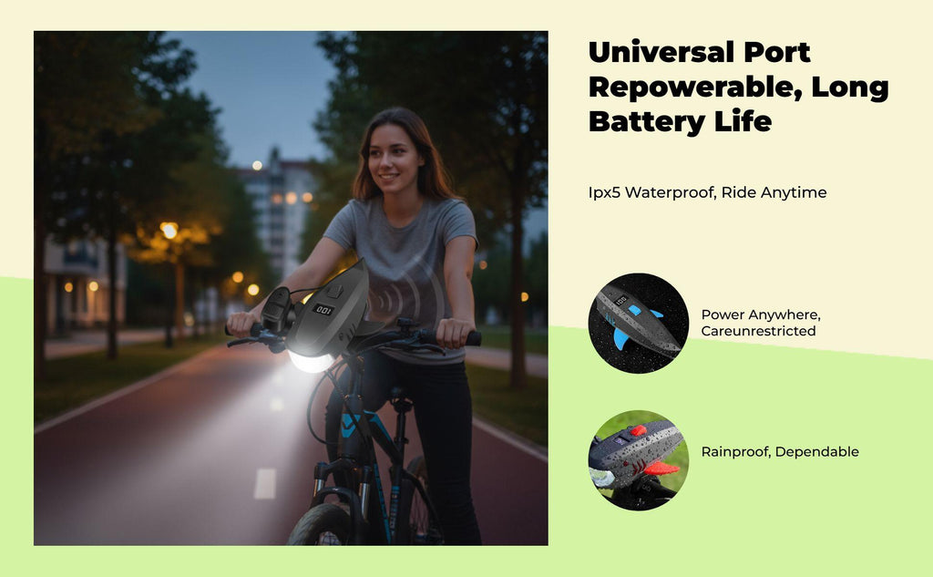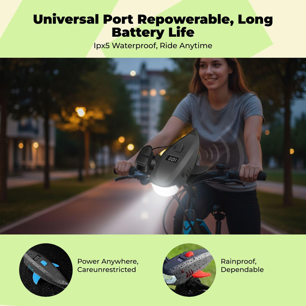 【Extremely Bright Bike Light for Night Riding】This highbrightness bike light combines powerful brightness with a built-in horn, ensuring safety and visibility for night cycling, commuting, and trail riding.【Waterproof and robust Design】With an IPX5 waterproof classification and a shock-resistant ABS shell, this bike headlight is designed to handle rain, fog, and rough terrain, making it perfect for all-weather riding.【universal serial bus Rechargeable enduring Battery】Featuring fast universal serial bus charging and an exceptionally long battery life, this bike light provides convenient cordless use and dependable performance for extended rides.【Multiple Lighting Modes & Easy Installation】Choose from 4 lighting modes including spotlight, shine, and diffused light. The no-tool snap-on bracket enables quick and easy installation or removal.【2-in-1 Horn & Headlight for Enhanced Safety】The integrated horn delivers a powerful 110-decibel alert to pedestrians and vehicles, offering additional protection in high-traffic and low-light environments.