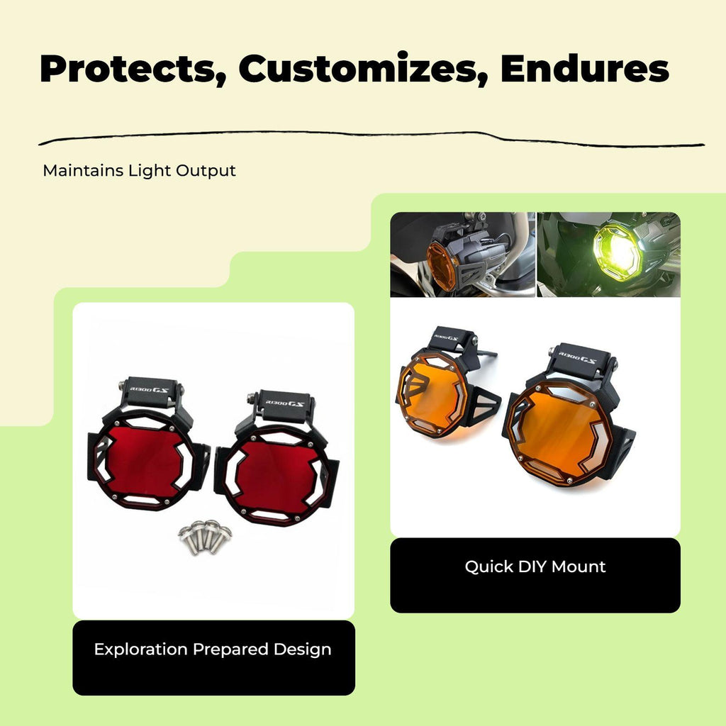 【Resilient Fog Light Protector for Motorcycle R1300GS R1250GS】This aluminum alloy guard provides dependable protection for your motorcycle’s fog lights, preventing debris and stones from damaging the lens during exploration rides and everyday commutes.【Easy Installation, No Modifications Needed】Designed for direct replacement and enhancement, this fog light protector accommodates original light-emitting diode fog lights and can be installight-emitting diode without any damage or modifications to your motorcycle.【sturdy and Practical Design】The robust metal mesh and acrylic construction deliver enhanced durability and effective protection, making it suitable for both awaytrail and urban riding conditions.【High Quality and Cost-Effective】Crafted from anodized aluminum alloy and acrylic, this fog light cover awayers premium materials at an outstanding value, ensuring enduring use and dependable performance.【Versatile Compatibility】Compatible with motorcycle R1300GS, R1250GS, and exploration series, this protector is a practical enhancement for motorcycle lovers seeking improved safety and appearance.Specification: