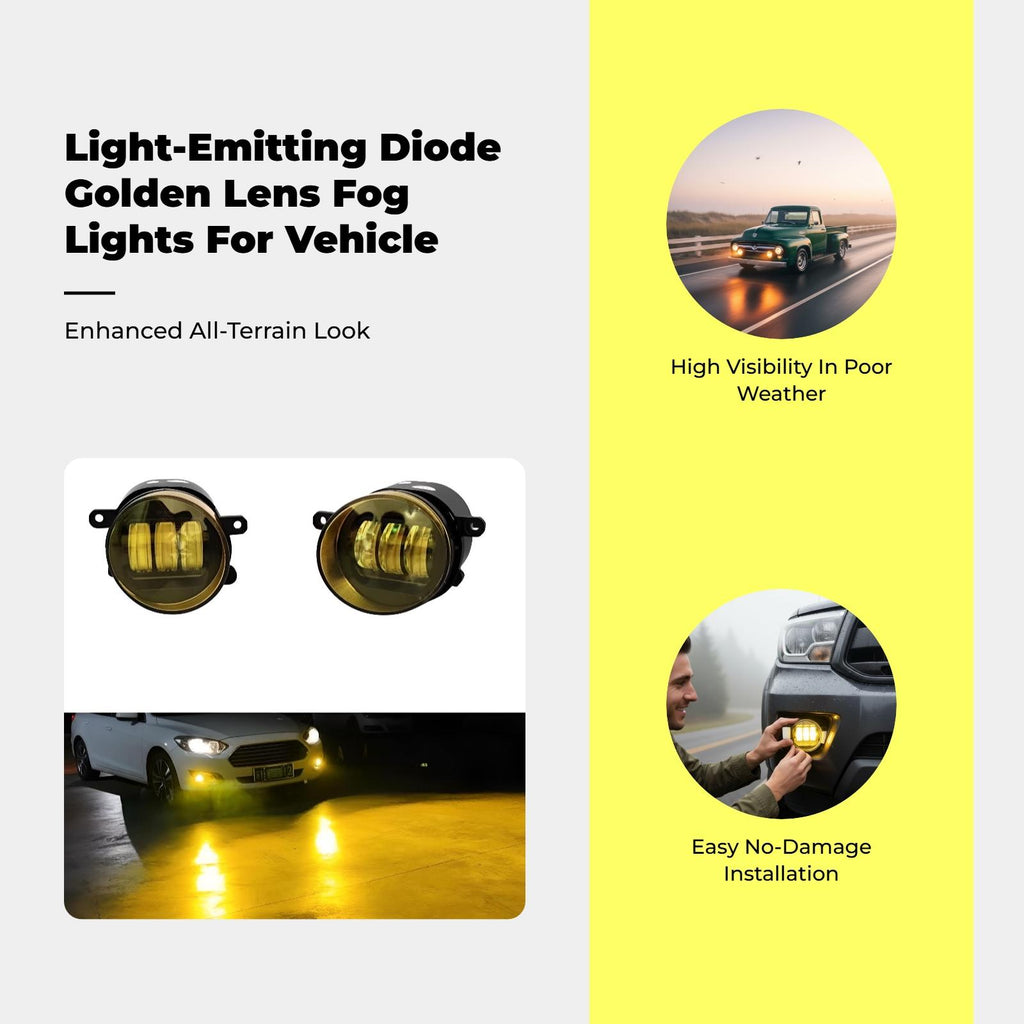 Fog Lights, Golden Lens, Compatible with Prado SUV Elevated Sedan model, Front Waterproof, Enhanced Visibility Gold Prado B
