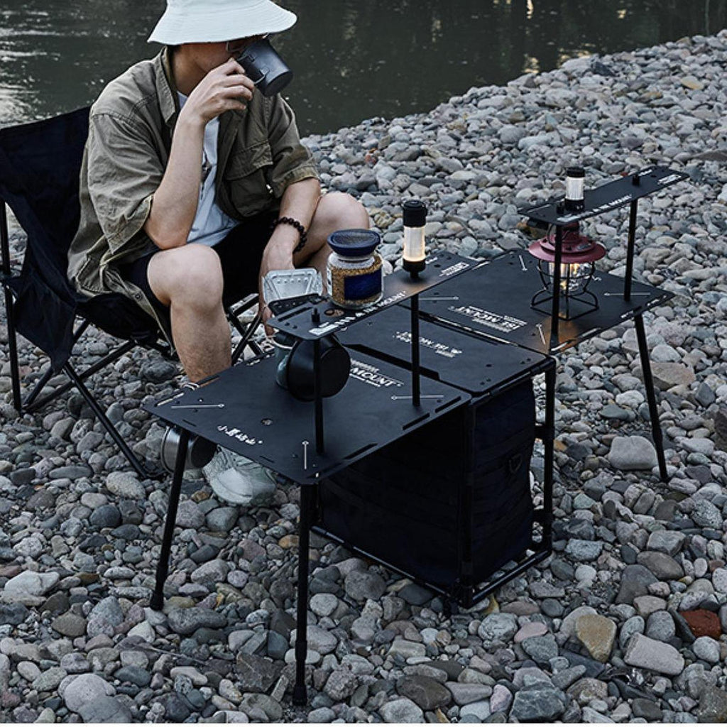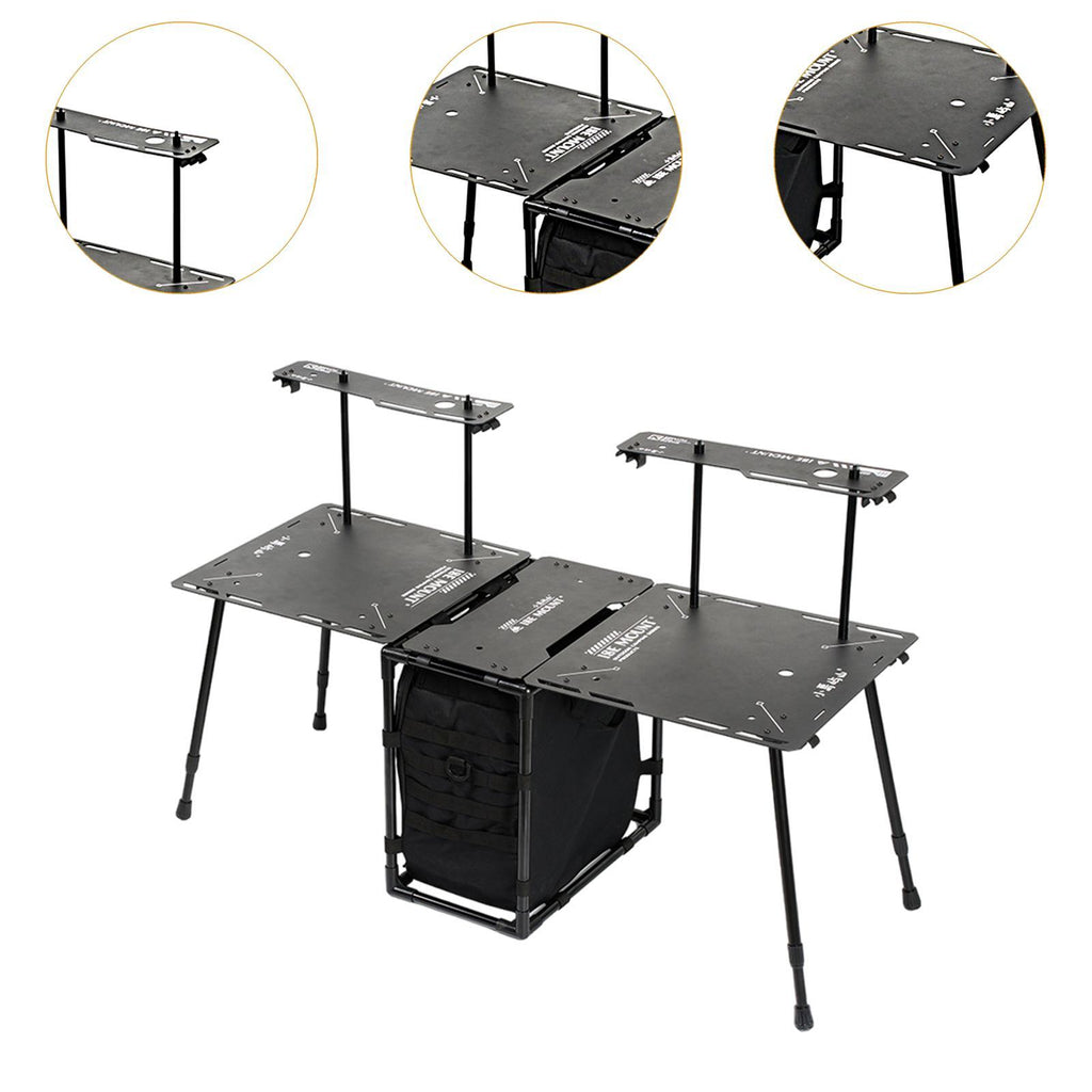 【Quality Material】: This camping table is made of aluminum alloy, nylon and oxford cloth, which is sturdy, not easy to bend and deform, can be used for a long time