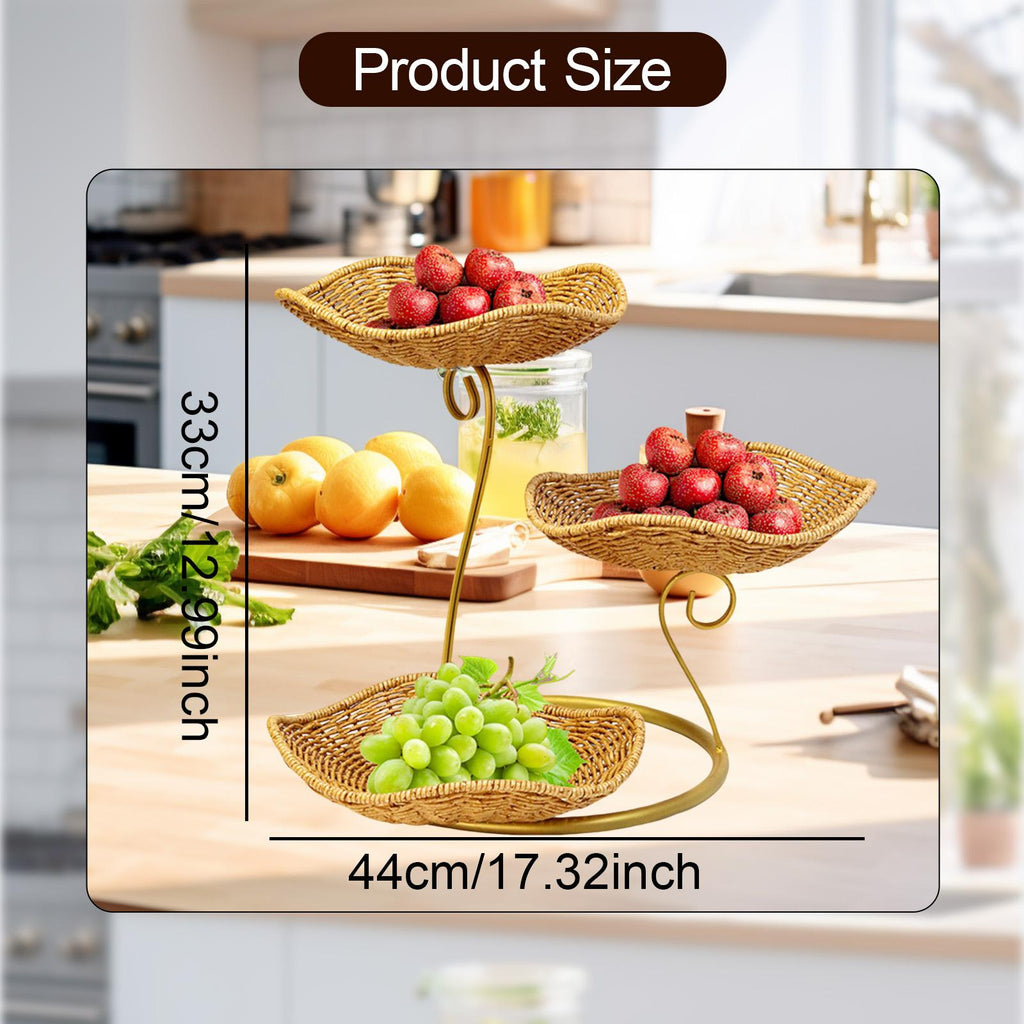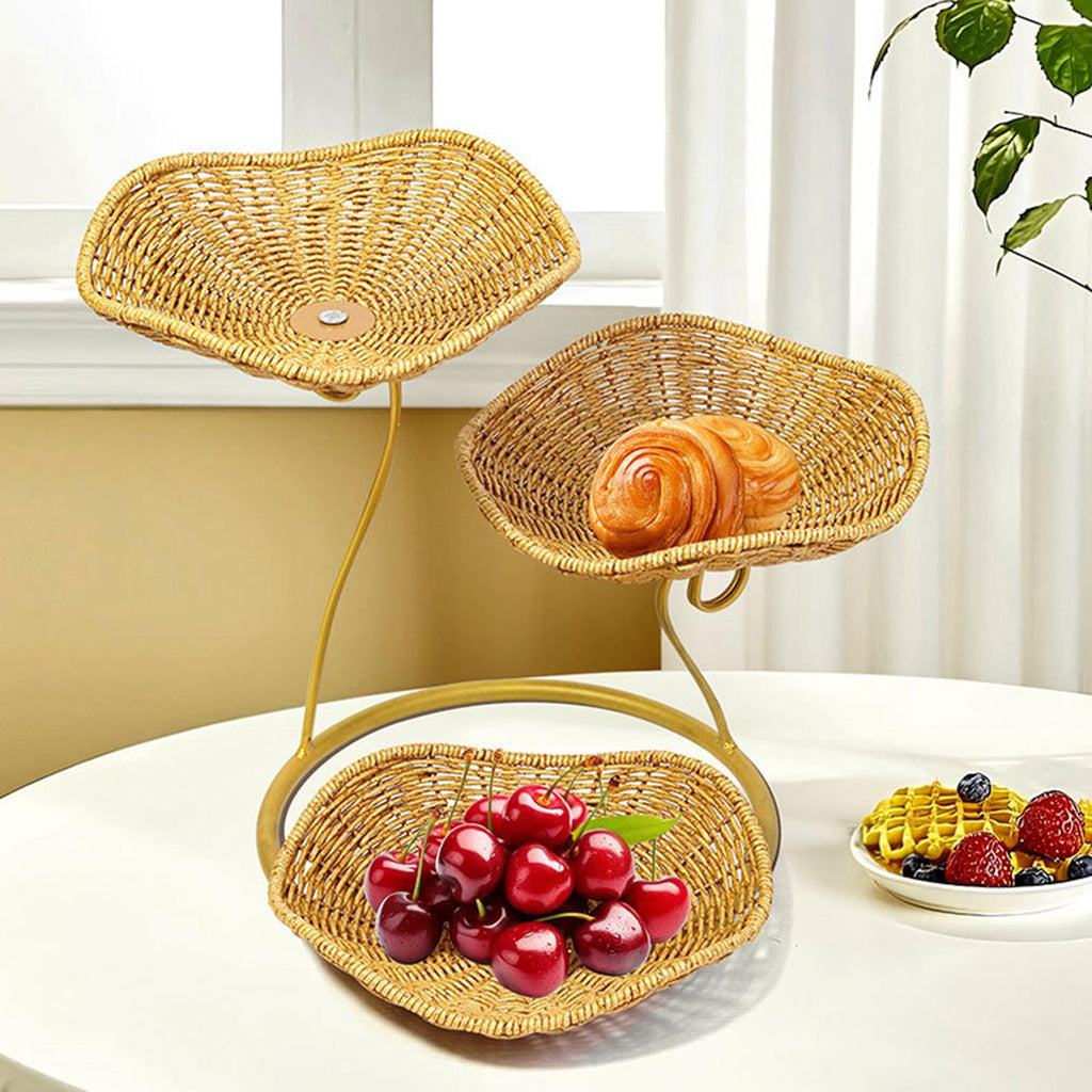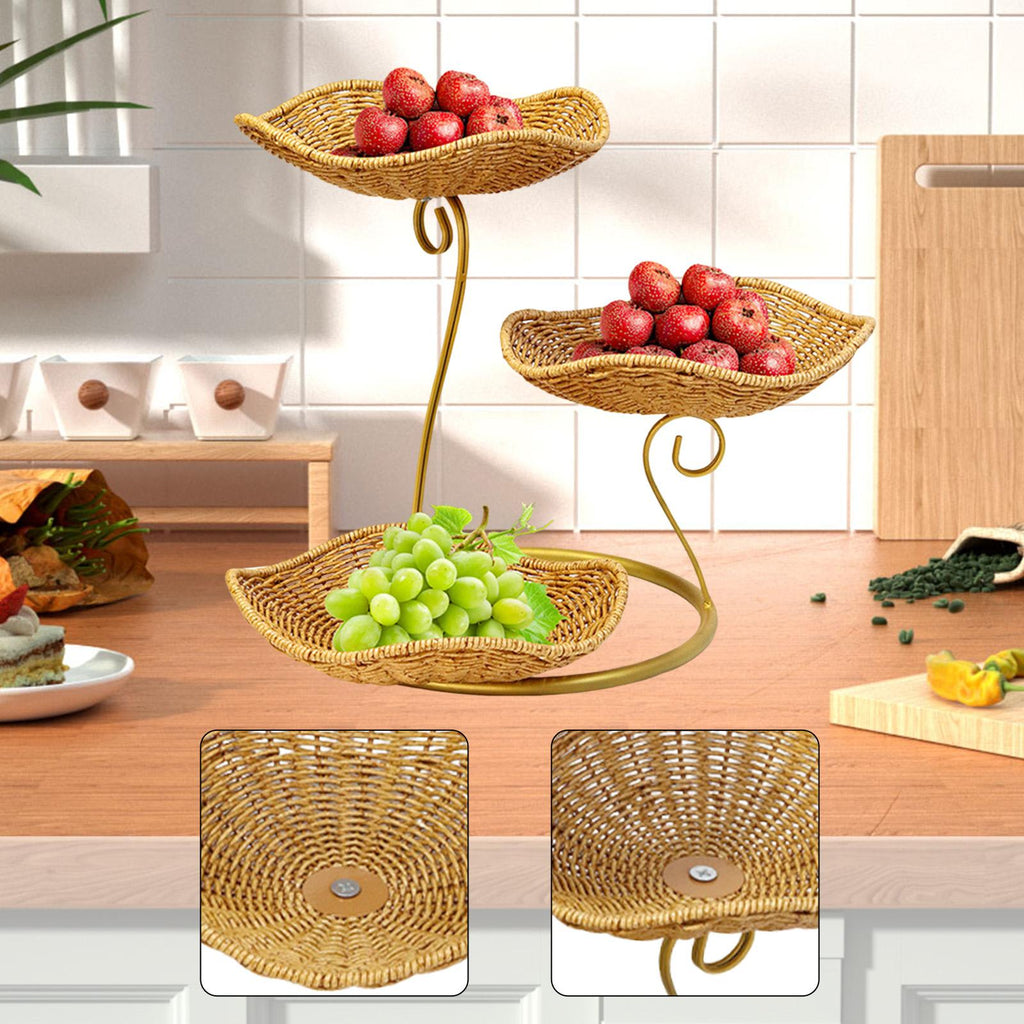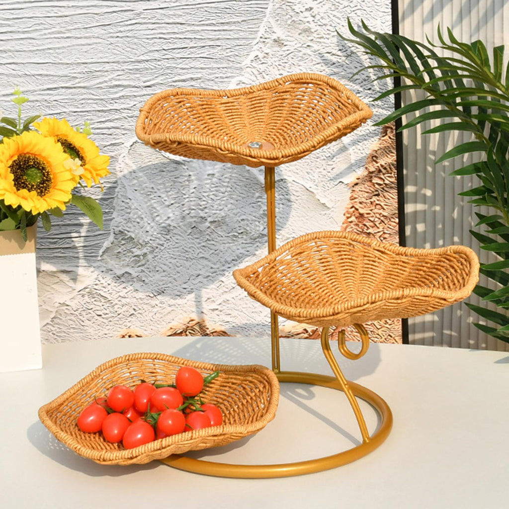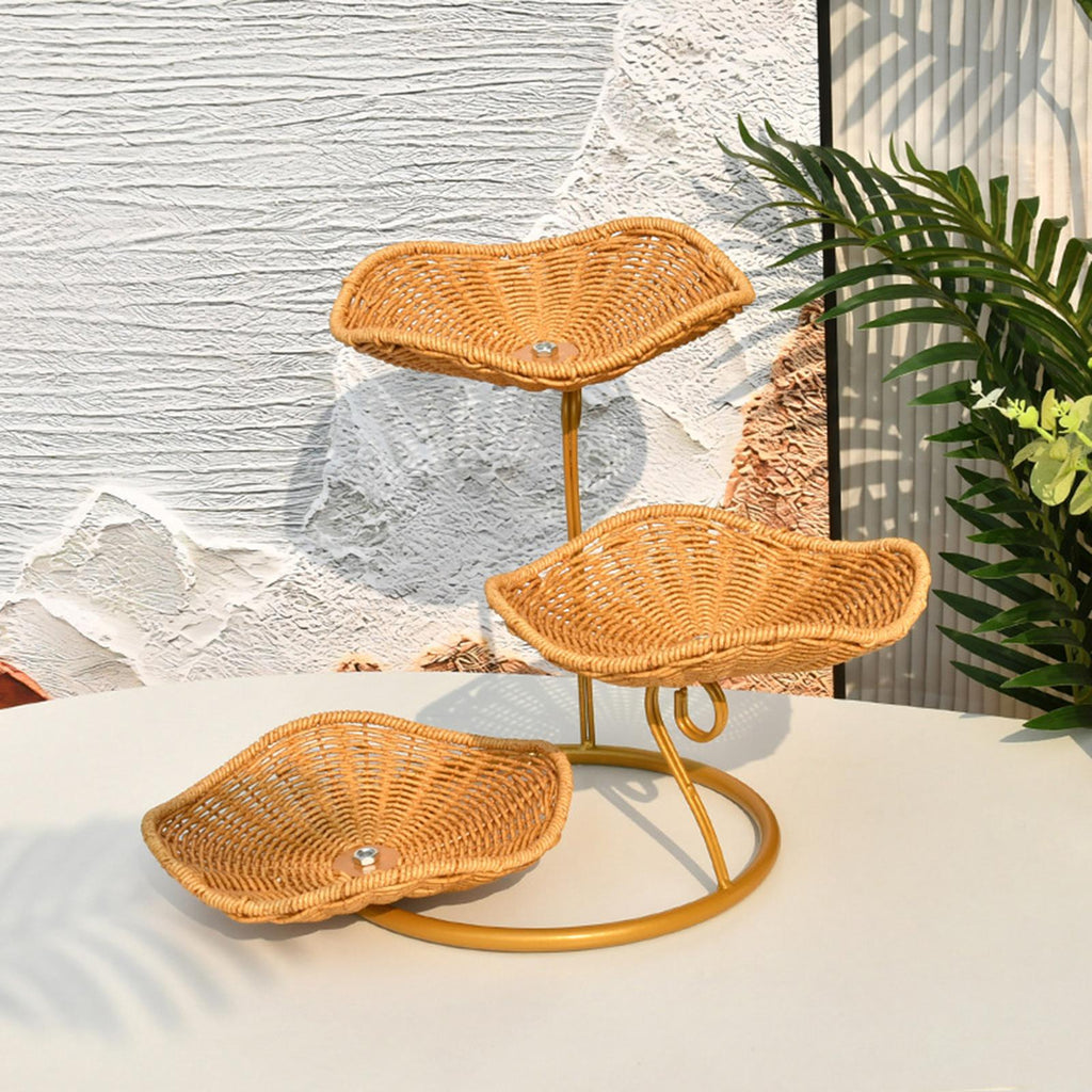 Maxbell Fruit Basket 3 Tiered Imitation Rattan Lightweight Versatile Stand Organizer